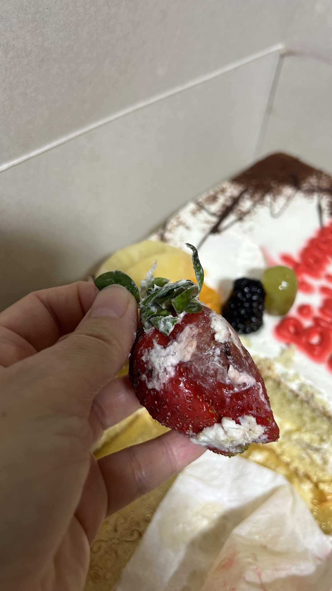 Read moreMOLDY FRUITS on top of DRY sponge cake soaked in syrup. I don’t understand what kind of cake can be both spongy looking and taste like wet cardboard. Do yourself a favor and buy your cake ANYwhere else. We bought a big cake for my dad s birthday. When we cut the cake, there was brown oxidized banana slices in the middle. The fruits on top look good only on the top because of the gelatinous sauce, the bottom is covered with white and gray mold! Even the green grapes are brown and mushy on the bottom and you know it takes a few days for grapes to go mushy! We called the bakery the next day they rudely denied they sold us an old cake! They said they make their cakes every day! Look at this cake and tell me if it’s fresh! You decide by looking at the pictures I posted. We are gonna throw the rest of the birthday cake away for our own health since they tell us no refund even if we bring the cake back with receipt. We unfortunately served 3 people before we realized the fruits were moldy. We are never coming back for anything when a business is not trustworthy. I get it, mistakes happen so if you sell us an old fruitcake just...