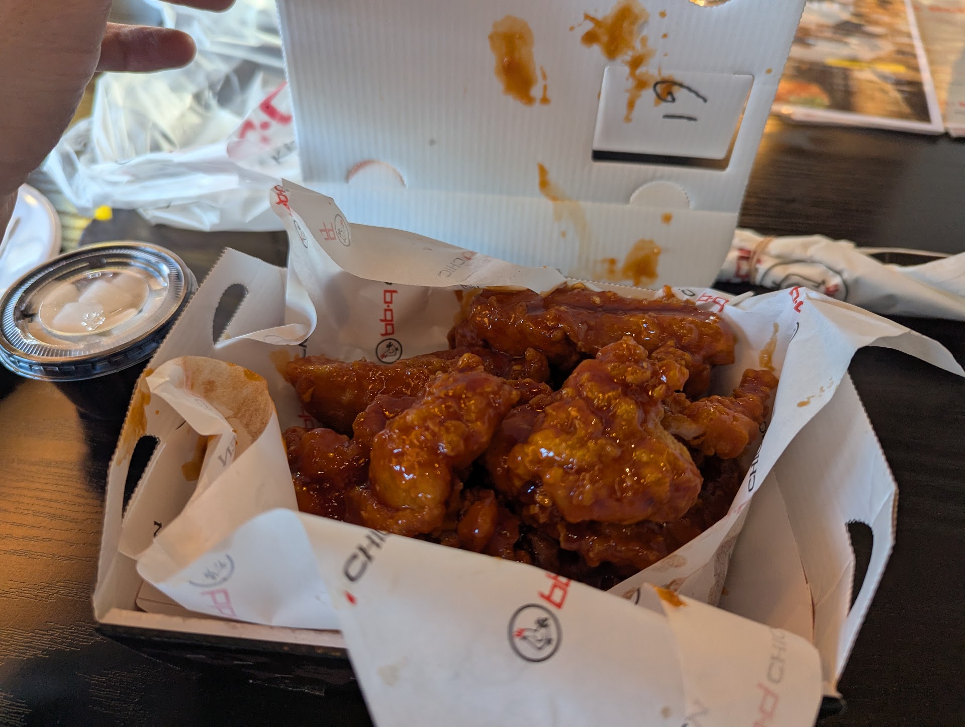 Read moreFirst time trying this place. Honestly, I came here only because I was pressed for time and my other favorite Korean fried chicken spot was too far. From the jump, the service was lack luster. The employees looked bored. I told them I was new and despite giving them that information they did not go into any detail describing what they had. The chicken looked great. Smelled great. I had their boneless chicken in secret sauce. The initial taste was good but the after taste was odd and unpleasant. For the price that I paid for this meal, it absolutely was not worth it. The place definitely has its fan base as people were coming in and out to pick up their to-go orders. So just for the benefit of the doubt, perhaps I did not order the right thing. However, the price and the unpleasant experience for me is enough that I am not willing to gamble...