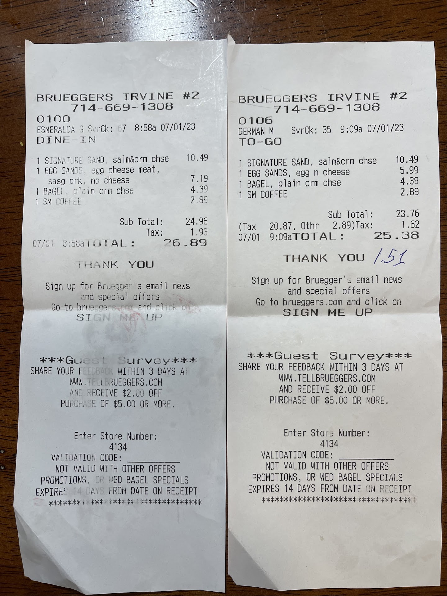 They would not give me a refund. I wanted to teach them a lesson and attempted three times to ask my money back. They then printed a “correct” receipt, wrote down $1.51, and told me I will receive a credit.