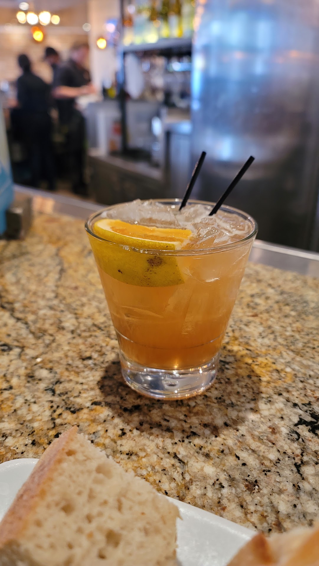 First off, when we got there, the girl at the front obviously was not having a great day. Didn't smile once or welcome us in. After waiting in line to check in, she said it wasn't busy and wouldn't put down names despite the fact there were at least 5 groups of us standing around waiting. Anyway, after a bit, I asked if the bar was open seating. She said it was, and we could go over. (Would have been nice to know rather than just standing around). Walked over, and we sat at the bar. It was clean and open. The bartender, Blanca, welcomed us and got us menus. She was a delight. It was obvious she was busy, but she always checked up on us and made sure we were happy. I ordered the Shrimp Scampi Zucchini. When reading the description, it sounded like it was mostly zucchini. However, it was mostly noodles with zucchini "curls." It was very watery and desperately needed salt and pepper. Blanca was very helpful and got cracked pepper and more parmesan cheese to help kick up the flavor. My husband had the WCB burger (I think that's the name?) and said it was delicious. The only issue was the bun fell apart. He told me he thinks it would have held up better if the buns had been toasted first. Our drinks were delicious, so there are no complaints. One issue - a manager, I believe named L.A., was on his lunch break sitting at the bar. He was so inappropriate. He sat next to another coworker who was off work. The entire time he was eating, he was bothering this lovely woman. She was on her phone and purposefully was not looking at him while he kept bothering her. He was making racially inappropriate voices and trying to get in her face. He was holding food at her and was making donkey sounds, then saying things in Spanish to try and, idk, flirt? Be funny? It was wildly inappropriate. When he got up and walked off, she looked at me with that look many, if not all women know. No words needed to be spoken between us. We both shook our heads. I felt bad for her because I've been harassed at work before by management, and there is a helplessness that comes with working under your harasser. I hope she is able to go to someone to report him. The place was clean, the food was ok. The drinks were bomb!...