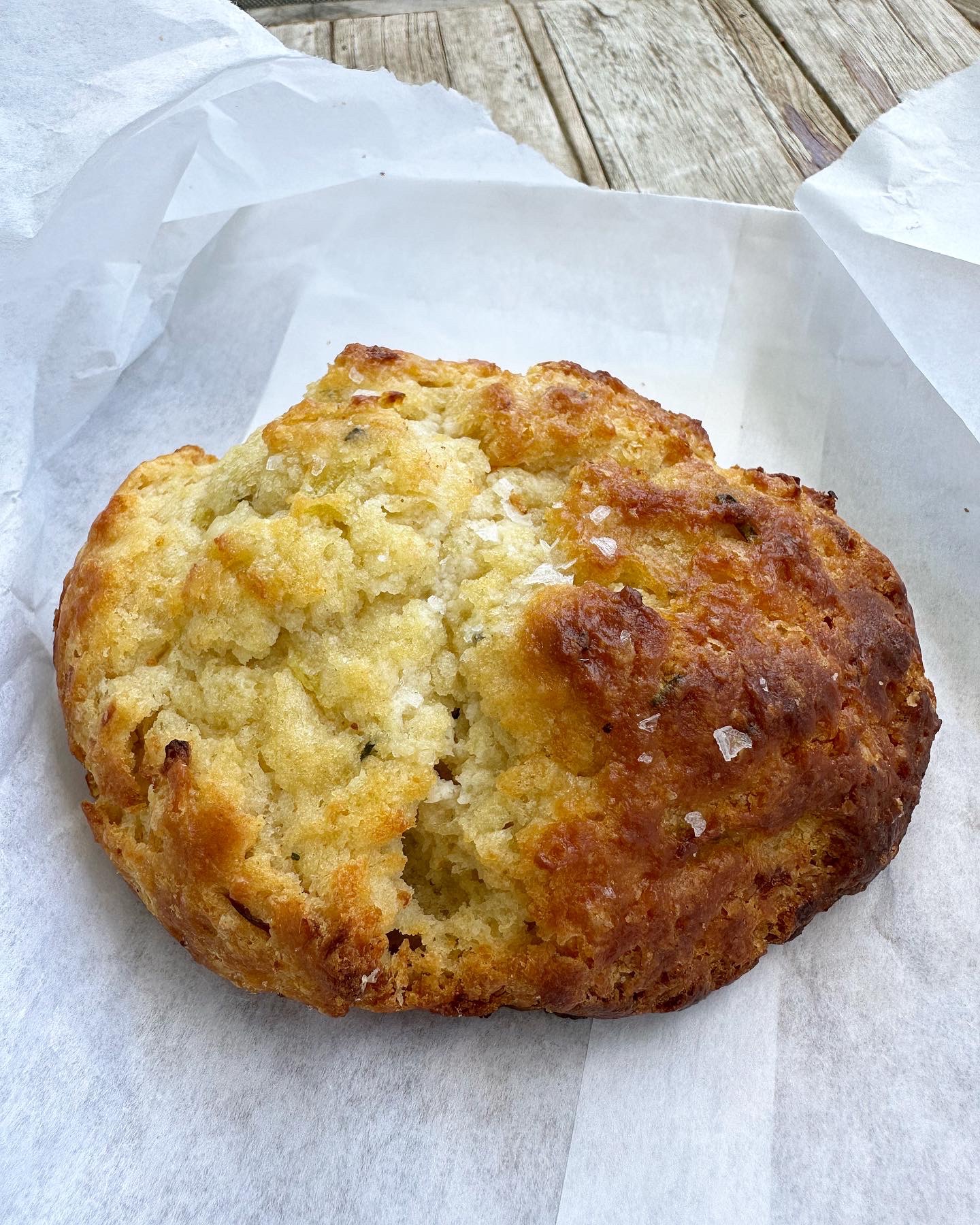 When I arrived here, I ordered an Iced Americano and a Potato Rosemary & Onion scone to eat together. There were no tables inside the store, only outdoor tables in front of the coffee shop.