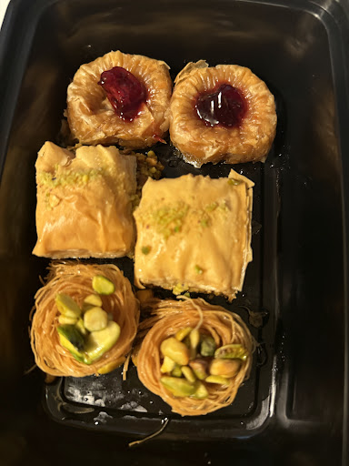 Desserts ($4.50ā$8.75): Honey Cake, yogurt with honey and raisins, and assorted baklava.