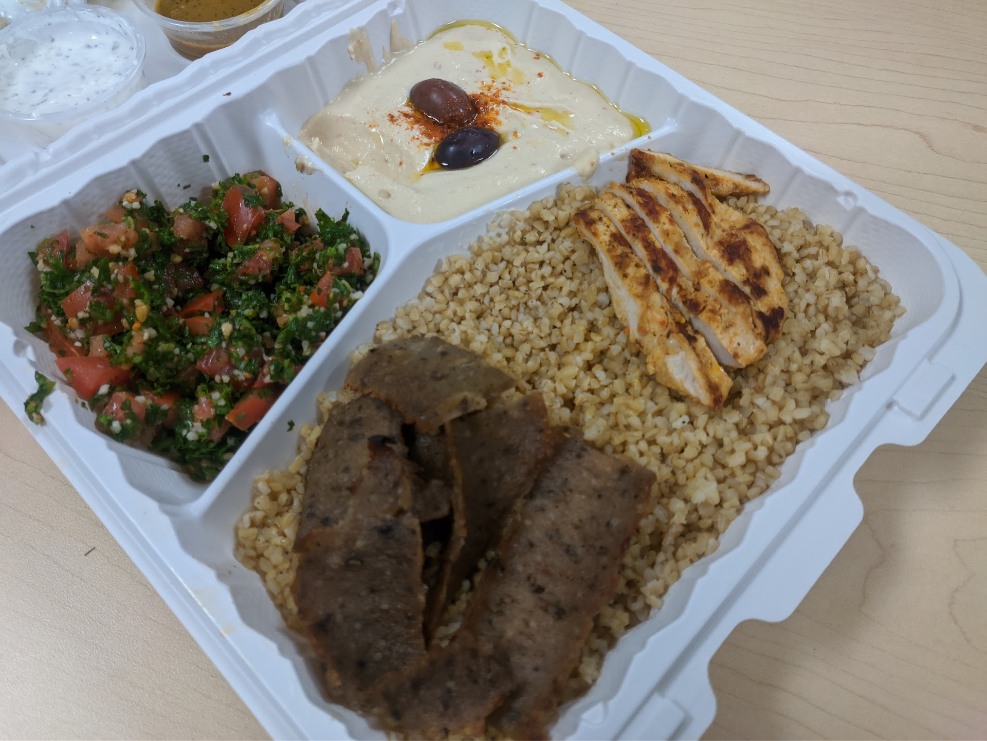Disappointing. Ordered the Athena plate to go from here. The main problem is the portion size of the protein. This plate costs $16 and u get a quarter of a chicken breast and like 3 small shavings of gyro meat. The meager amount of chicken is lightly spiced and dry. The gyro meat is sausagey. The hummus has way too much tahini and not enough chickpea, literally feels like you're eating tahini. The taboule is average. The pita is thin and cheapy. $16 dollars for this?!? Nothing in here warrants the cost. I could understand if this was. Closer to $10