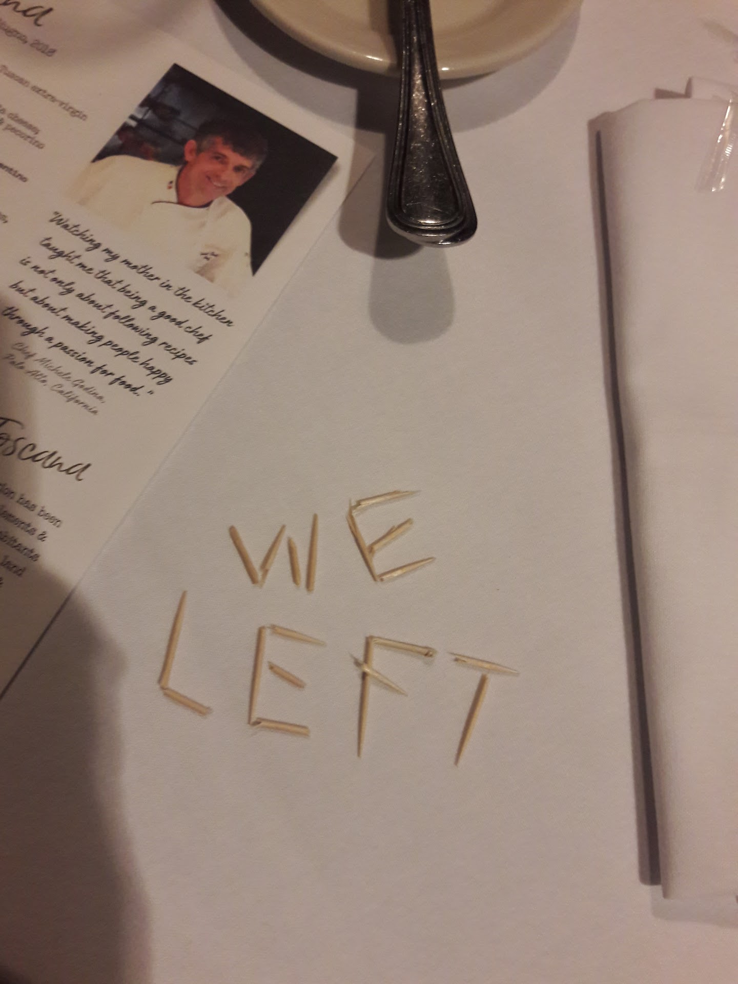 The biggest issue that ruined our evening was Tony! How could a waiter just lie to our face? Does he assume that we don’t know Italian and wouldn’t go confirm with another employee? His poor attitude, slow service, and lack of integrity made this restaurant experience a 3/10.