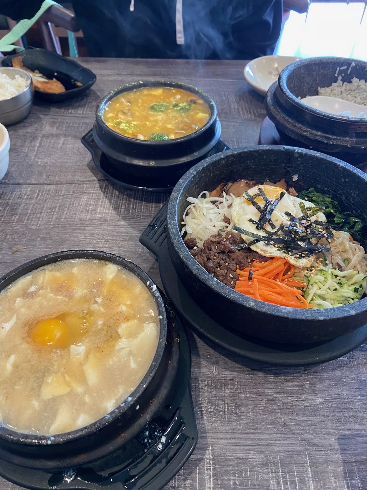 Read moreUsually love coming here despite the awful service because the food slaps. Today the service was EXCEPTIONALLY bad and the lady burned my hand because she threw the soondubu down on the table without any consideration that the boiling hot soup might splatter as she drops it carelessly on the table or that the stone bowl could burn someone. I saw her do the same to a different table despite a child sitting so closely to the soup she carelessly tossed down on the table.