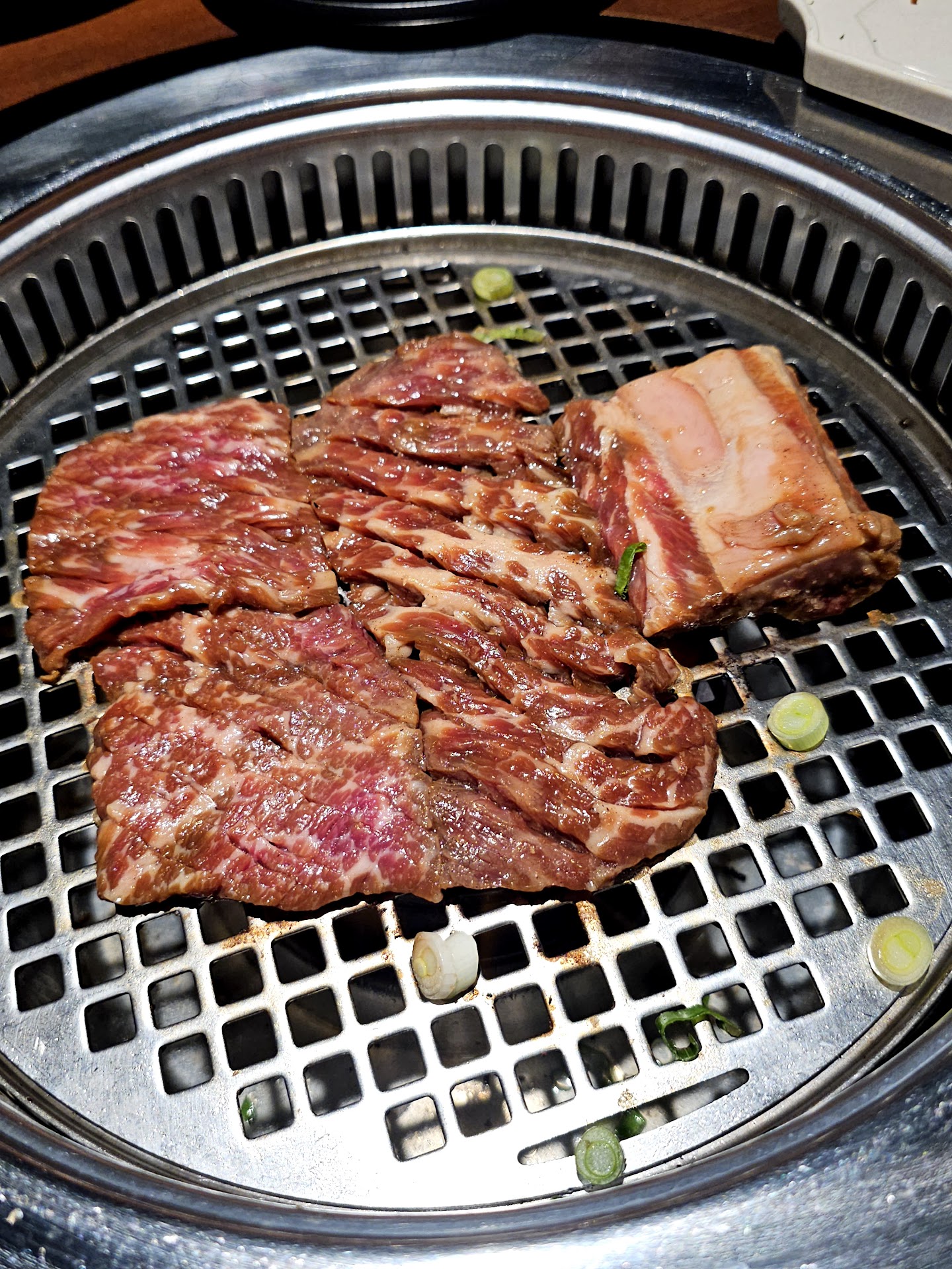 We got the combo set S for the 3 of us to share. It was more than enough. We were recommended to go with the table side sauce which did not disappoint. They cook everything for you and the grill was awesome because the room was not filled with smoke. The premium Kalbi was the best. Should have started with that first but the marinade was good.
