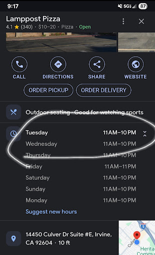 Really disappointing, somebody is going to get really sick if it hasn’t happened already. I visited Lampost Pizza in the Heritage Plaza in Irvine located on Culver and Walnut for the first time in many years. I remember them having great service and great pizza in a nice atmosphere. Unfortunately times have changed. Let’s start from the beginning. We walked in around 2pm on a Sunday. The place was maybe 30% full, which isn’t that busy. We stood at the order counter for at least 5 minutes before anyone even acknowledged us. We were the only people standing there. There were a bunch of kids running this place, which seemed odd. A young man with long hair finally arrives to take our order, which I had to repeat a few times before he got it right. He told us our order would be ready in 15-20 minutes. We returned in 20 minutes only to be told a large party had arrived so they were now behind and my order wasn’t even started yet. We placed our order before the large party arrived, so that made little sense to me. We waited outside, as nobody in the building was wearing masks. We came back in another 10 minutes only to be told, “sorry I was on the phone taking orders this whole time, I’ll get your order started now”. At this point we stood off to the side with a clear view of the kitchen. This is where it gets disgusting…..not one person in the kitchen was wearing a mask or gloves. Two individuals had long hair without any type of hair net or hat, so the chances of getting hair in your food is pretty good. I watched them wipe sweat from their face and foreheads. Then they were grabbing all the ingredients with bare hands that I’m sure hadn’t been washed in some time. The young man with long hair who was working the order desk, handling money, working the cash register, talking on the phone, and opening doors to deliver food to the patio now grabs a container for our antipasto salad. He reaches into the lettuce with his bare, unwashed hands that had been handling everything mentioned above and throws a handful of lettuce into the container. He then proceeds to grab the meat for our salad with the same dirty unwashed hands. He turns and notices I’m watching him and says “we’re working on your order right now”. Keep in mind, we placed our order about 40 minutes ago. I signaled for him to come over to me where I said to him “no need, I’ll be canceling my order, I just watched you grab my salad ingredients with your unwashed, bare hands, that is disgusting”. I couldn’t believe it when he said, “do you want me to make it again”. I said no, just give me my money back, I won’t be coming here again. While waiting for my return, I continued to look around the restaurant a little closer, only to notice tables were not cleaned or wiped off, the floor was not clean, and even the video games had trash on them, including empty drink bottles, plastic utensils and condiment cups, and fingerprints all over the glass. It is obvious there is little thought put into pandemic safety, very little care taken when it comes to food safety, no appropriate protective gear advised by the CDC (masks, gloves, hair nets) & even proper hygiene in the kitchen is seemingly overlooked. At the time I was writing this review, I happened to read a couple other reviews on this location only to see similar experiences had been documented. I wish I had read them before visiting this location. All of this being said, I highly recommend finding someplace else to enjoy your pizza. There are plenty of...