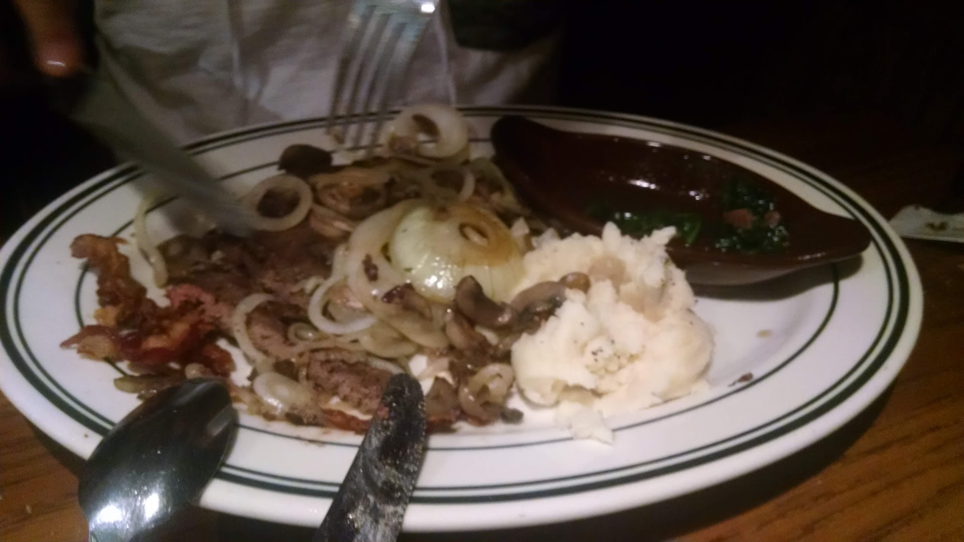 Previously we would visit 3-4 times a month when I'm in the area not only because we would get buy-1-get-1-free coupons via email, but because the food quality was so great. All of that changed on my most recent visit. I didn't think eating at a restaurant could make me feel so sad but this Mimi's managed to with flying colors. The Liver and Onions was served with onions that hardly caramelized and dry bacon. The pork chops looked just as dry, the spinach was soaked in oil/butter, and the potatoes gratin was cake-like in texture.