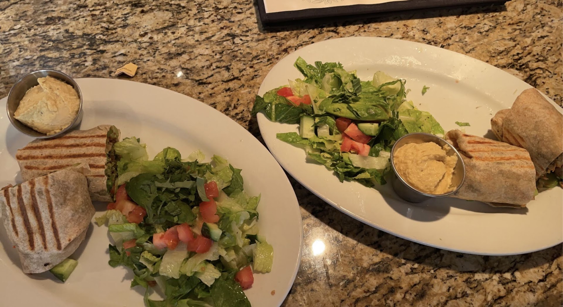 Now the negatives: I thought it was weird that I had a side of hummus with this. I’m used to dipping pita into hummus but just spread it randomly on each bite of my wrap. I would have preferred a side of tzatziki.
