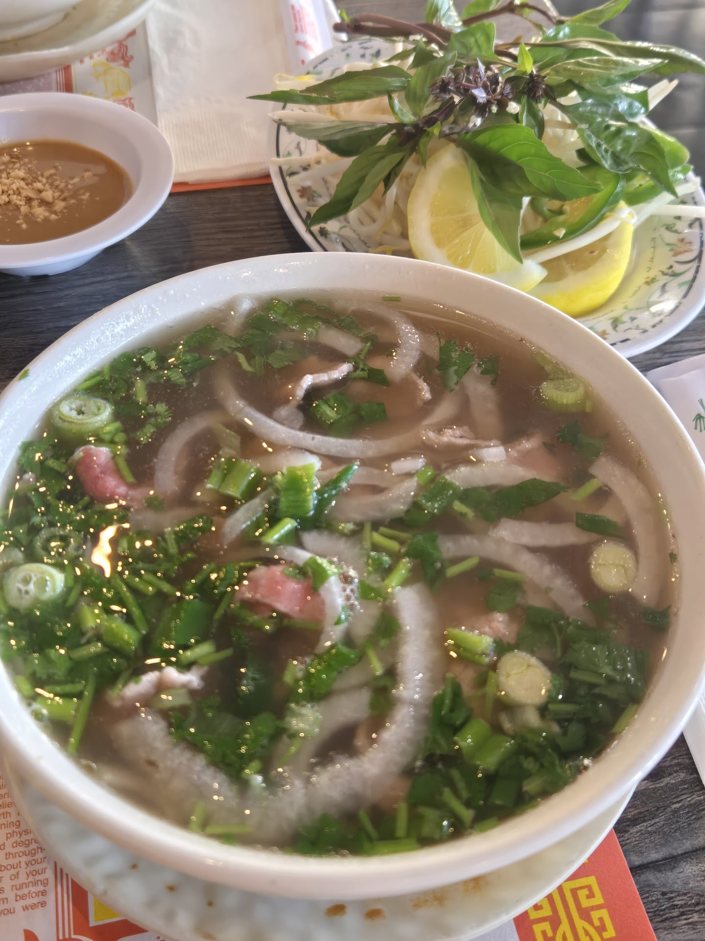 Read moreOf all the pho places I've tried in OC so far this is the one I keep coming back to the most, because the broth and noodles are so good and there's never a wait. Their broth has the distinct flavors of traditional Vietnamese spices and feels so healthy. Their noodles have a great bouncy chewiness, and it's not powdery feeling or packed into a hard square block like other places. They come apart easily if you get it to go. They do a great job skimming the fat oils from the broth to a perfect ratio where there's still tons of flavor but light enough that you can drink it forever and not feel gross. The meat and toppings all feel pretty standard, but the meat can be a bit overcooked when dining in. If you order to go they will give it raw so you can cook it better. The service has always been very fast and friendly. They always greet me with a smile I think because they recognize me, and I always get my food in under 5 minutes. Just be aware that they use a good amount of MSG sometimes that can make you feel weird if you are...