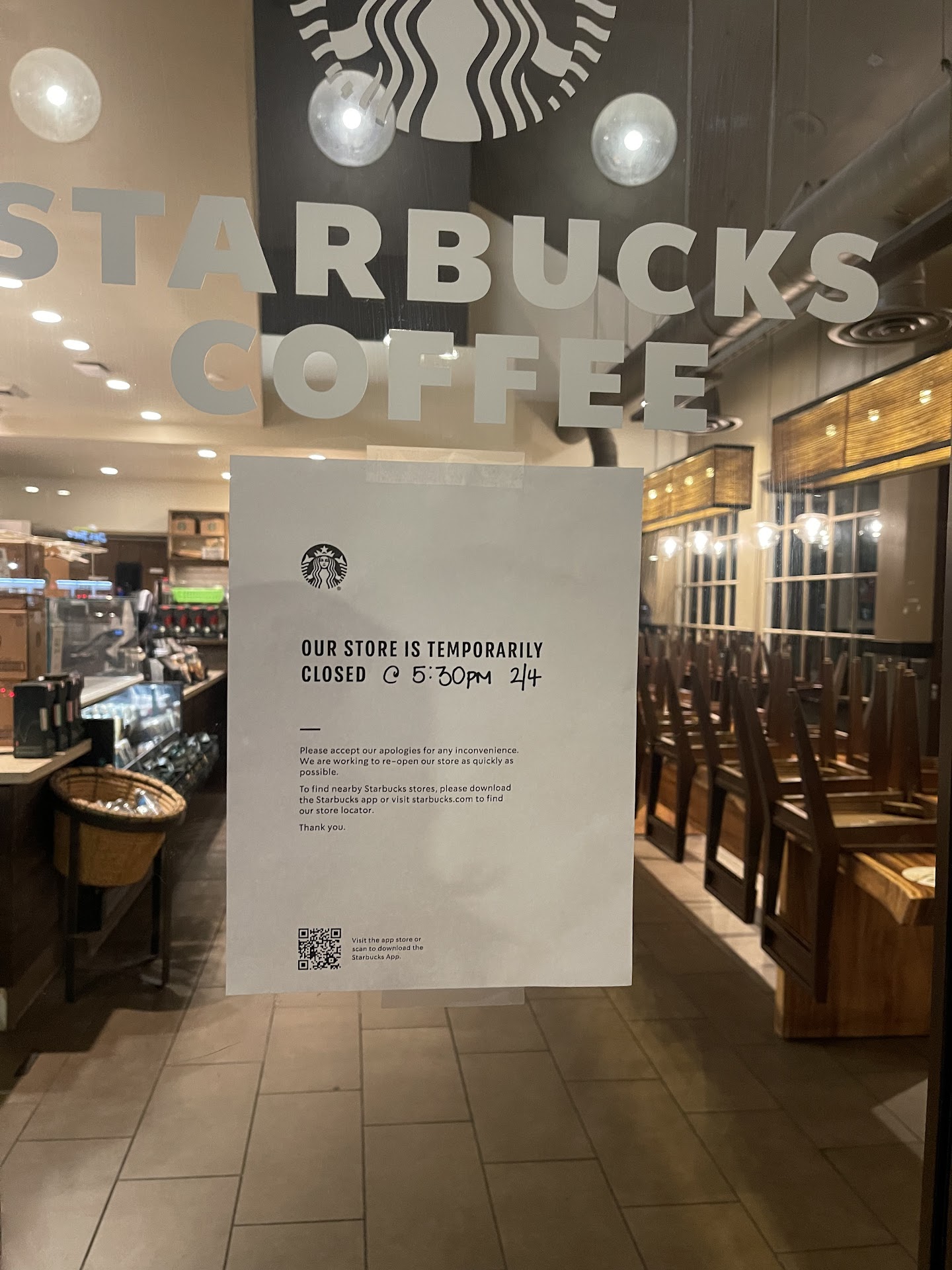 Read moreI had the unfortunate experience of visiting this Starbucks location several times, only to find that despite the advertised hours of 4:30 AM to 12:00 AM, the store was closed with a note apologizing for the inconvenience. This inconsistency in their hours is unacceptable and makes the 20-minute drive there and back a complete waste of time. The management of this location needs to do better in ensuring the store stays open during its advertised hours. Disappointing and unacceptable service. Not only are the inconsistent hours a major issue, but the cleanliness of the restrooms is also a major concern. On multiple visits, I was disappointed to find that the restrooms were in a state of disrepair and uncleanliness. The only redeeming factor of this location is the friendliness of some of the employees, specifically Nathan and James. However, this does not excuse the shortcomings of the overall store experience. This Starbucks location needs to improve in both its management and...