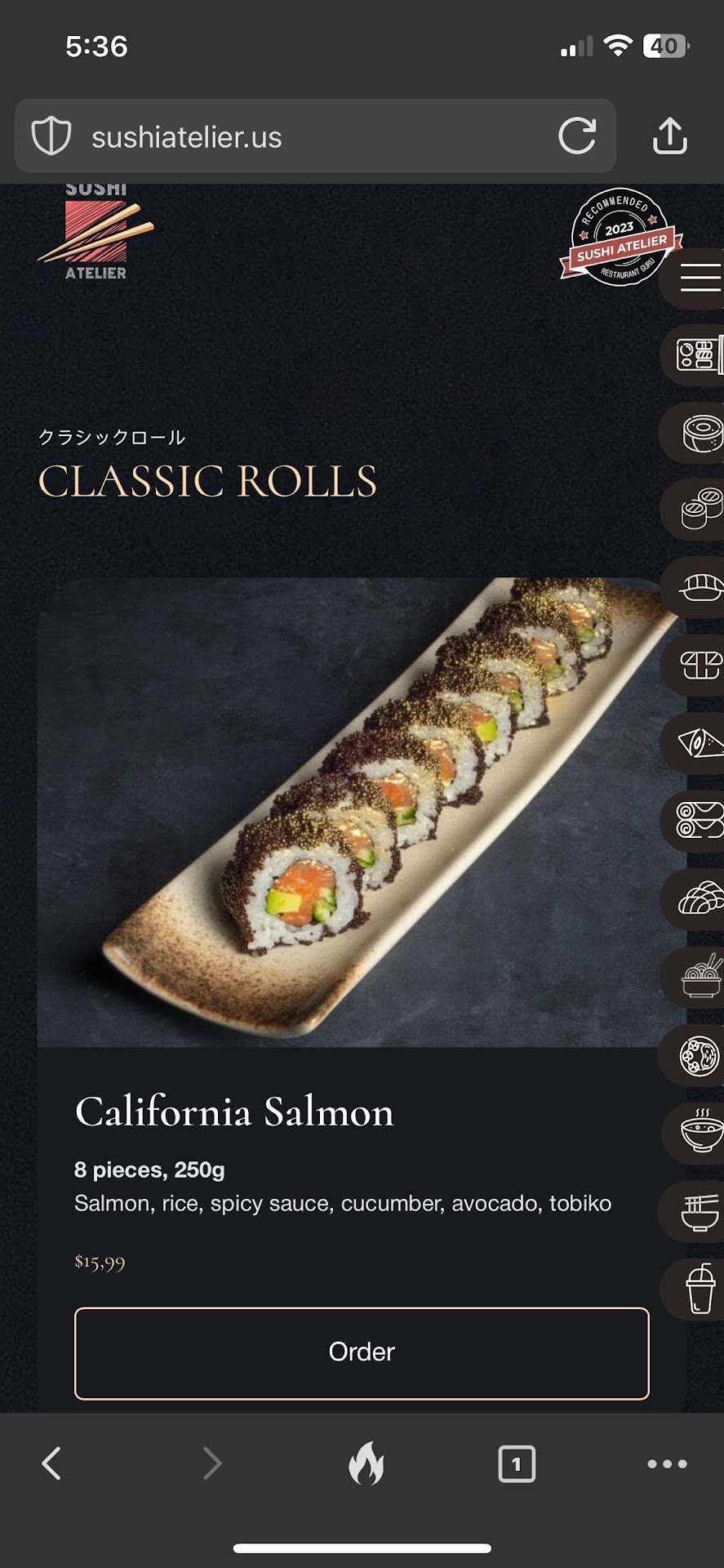 Read moreToday i came across this sushi place ( pick up/ delivery for now, they started recently) I found their Instagram and their sushi looked way too good that made me drive and pick up some just to give them a try! (We should support small just started businesses) My order which came out to under 30$ which is completely steal for this level of rolls, sushi and how it was worth the price!. I got two rolls and one salmon nigiri and wow, it is soft but mediocre as perfect it should be, completely fresh you can literally taste how produce is fresh, and simply how i got full and enjoyed so much my delicious healthy lunch! Such a gem to be honest, hopefully they make their way because beginning is hard but this place is hidden gem that everyone should now! I have been to high end sushi restaurants and ateliers sushi is even better with being freshly made i just was amazed how the food was fresh! Check them out if you are nearby Irvine, soon they...