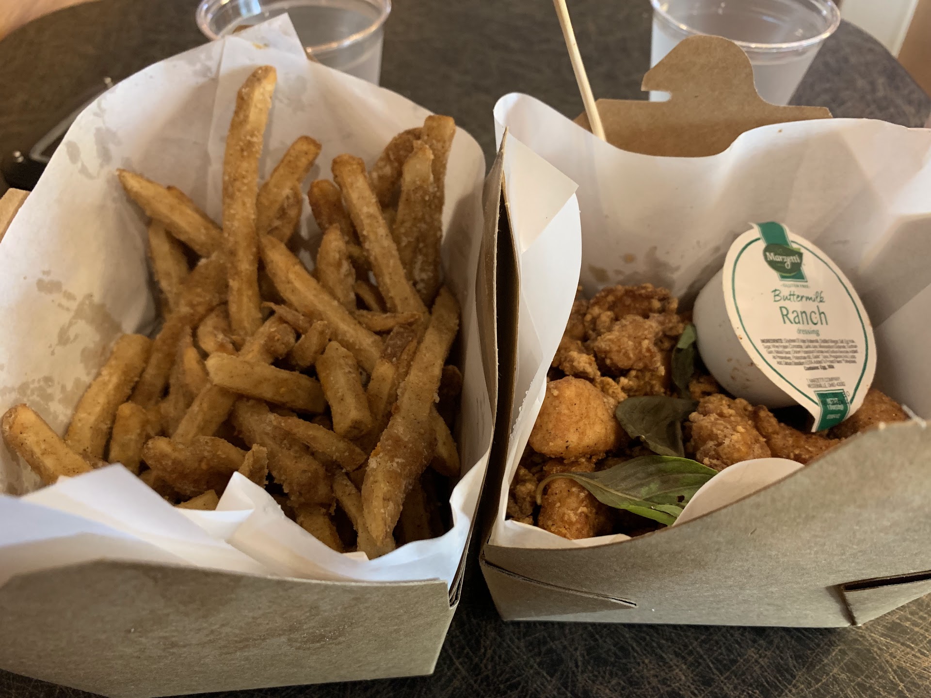 Food: 3/5 The chicken and fries are HOT and fresh. Iām not a huge fan of the Tastea dust. This seasoning is very strong. I wish it was a little less overwhelming. Both the fries and nuggets are very āheavyā. I can usually only eat about half of it before I feel like I need a salad or something healthy. Thereās not a lot of places where you can have gluten free chicken nuggets in Orange County (I know of two places).