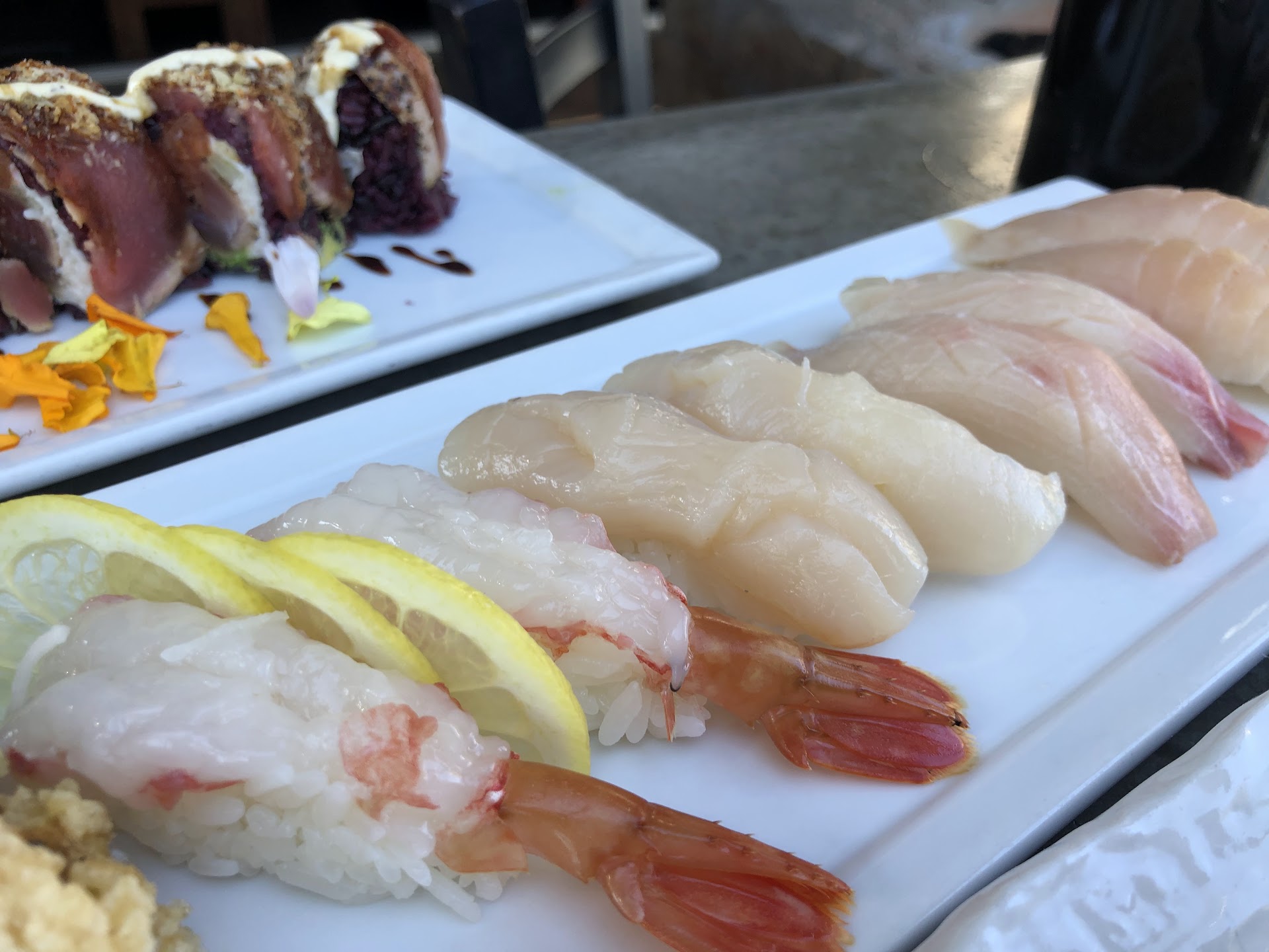 When the nigiris and roll came, we were shocked. Fish was just too dry to be true. You can see it right away!!! The Hamachi belly didnāt even look like one not to mention how it tasted like. The albacore belly was too dry... The rest was okayish. But worst of all, the rice!!!! OMG, itās so hard and dry! They got to learn how to cook rice! Or go try other Japanese or Asian restaurants to taste what rice is like.