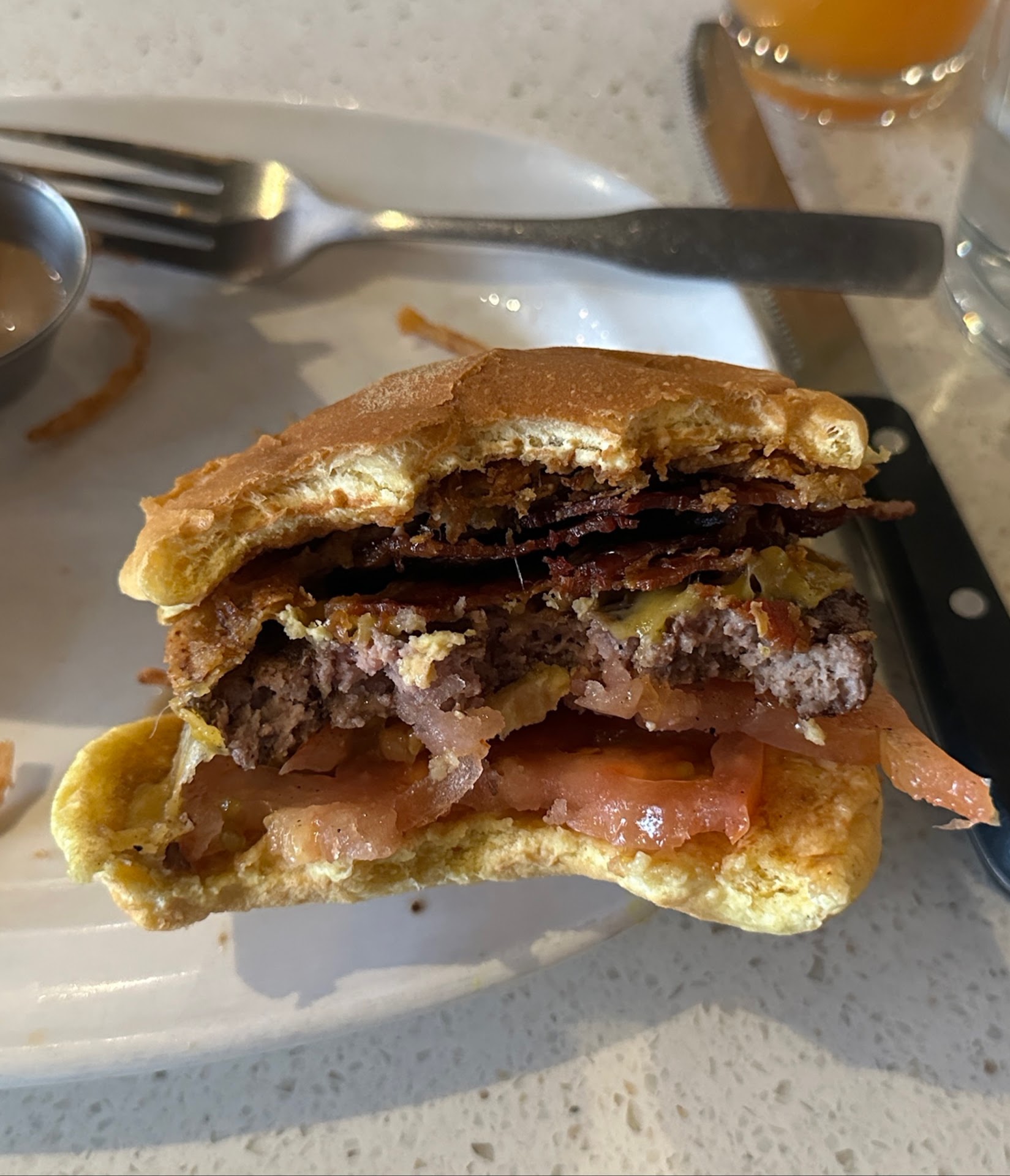 here is what I got Protein: Organic Bison Size: 1/2 lb Style: Brioche Cheese: American EXTRA CHEESE (SELECTED) Sauce, Dressing: Thousand Islands, Mayo Toppings: Caramelized Onions, Dill Pickles, Roasted Grape Tomatoes Premium toppings: Guacamole Side: Sweet...