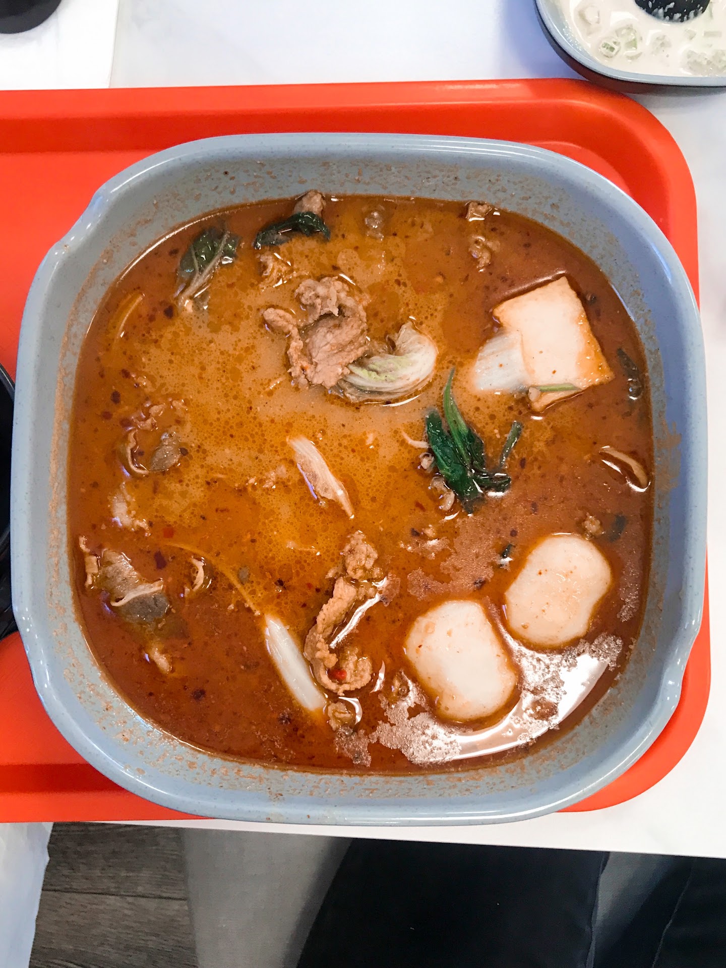 In a food court-like setting, YGF Malatang is bright and draws your attention immediately when entering. The setup allows you to customize your meal by: 🥣 Fix Your Own Bowl with proteins, vegetables, and/or noodles - Choices can be overwhelming but just take your time. My favorites proteins were lamb, beef shank, bullfrog legs, pork belly, and duck blood. I love cabbage and enoki mushrooms in soup! I love a think noodle so rice vermicelli were perfect for me, but I also loved the tofu noodles that reminded me of parpadelle. 🍲 Pick your soup base - We chose the thick beef bone broth with mild spicy level. It does pack some heat but very flavorful. 🧂 Create a sauce for dipping or add to your hot pot - I created a sauce to pour into my soup - sesame sauce, dry spice, smashed garlic, and chili oil. It gave the soup a creamy flavor like tonkotsu ramen base.