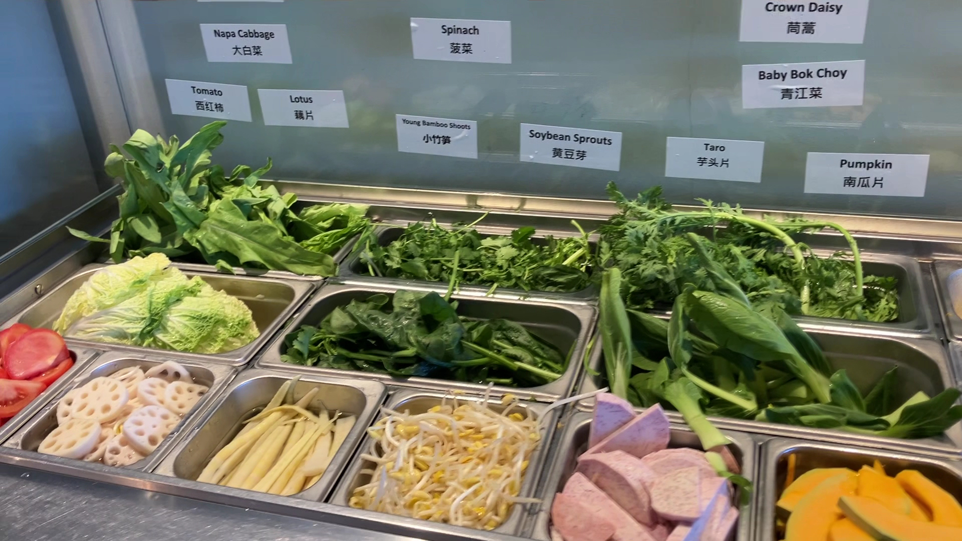 We can pick up the food we want and choose one of the 4 soup bases for free. One pound is $14.99. Purchases under one-pound are allowed. I personally like Taiwanese Spicy because it does not make my mouth go numb.