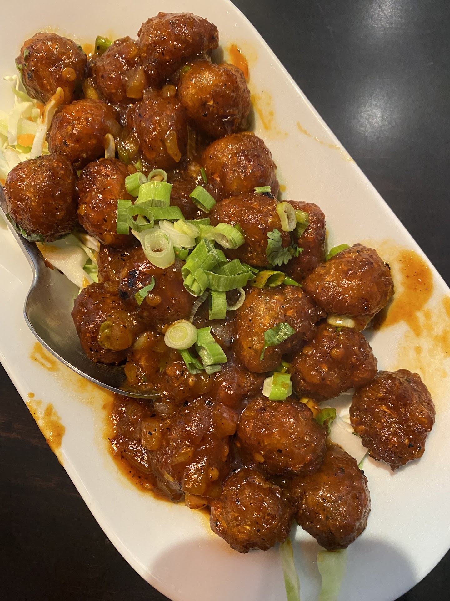 The menu was extensive, good selection of vegetarian dishes as well. We ordered vegetable Manchuria and corn Manchuria for appetizer and both tasted great! Was genuinely surprised with how good the taste of both the dishes were. We finished them in a matter of minutes upon their arrival. We ordered a Ghee dosa for our kid. The chutney tasted good, a little bland for adults, but they tasted good. The dosa was crisp and didnât taste sour. The sambar wasnât nice but chutneys portion was enough to not indulge in the sambar.