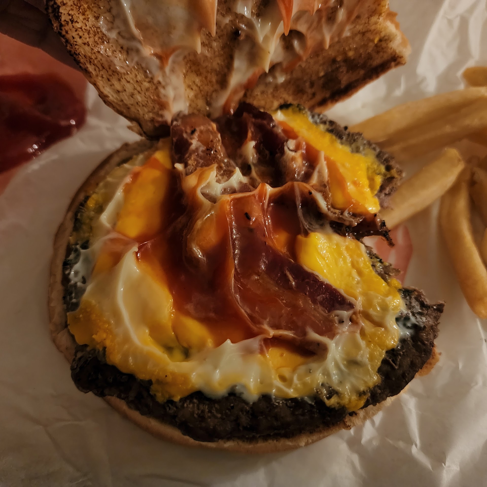 The burger was slightly warm as if it had been sitting there for a while before the cook just slapped a second patty into it and threw his hands up.