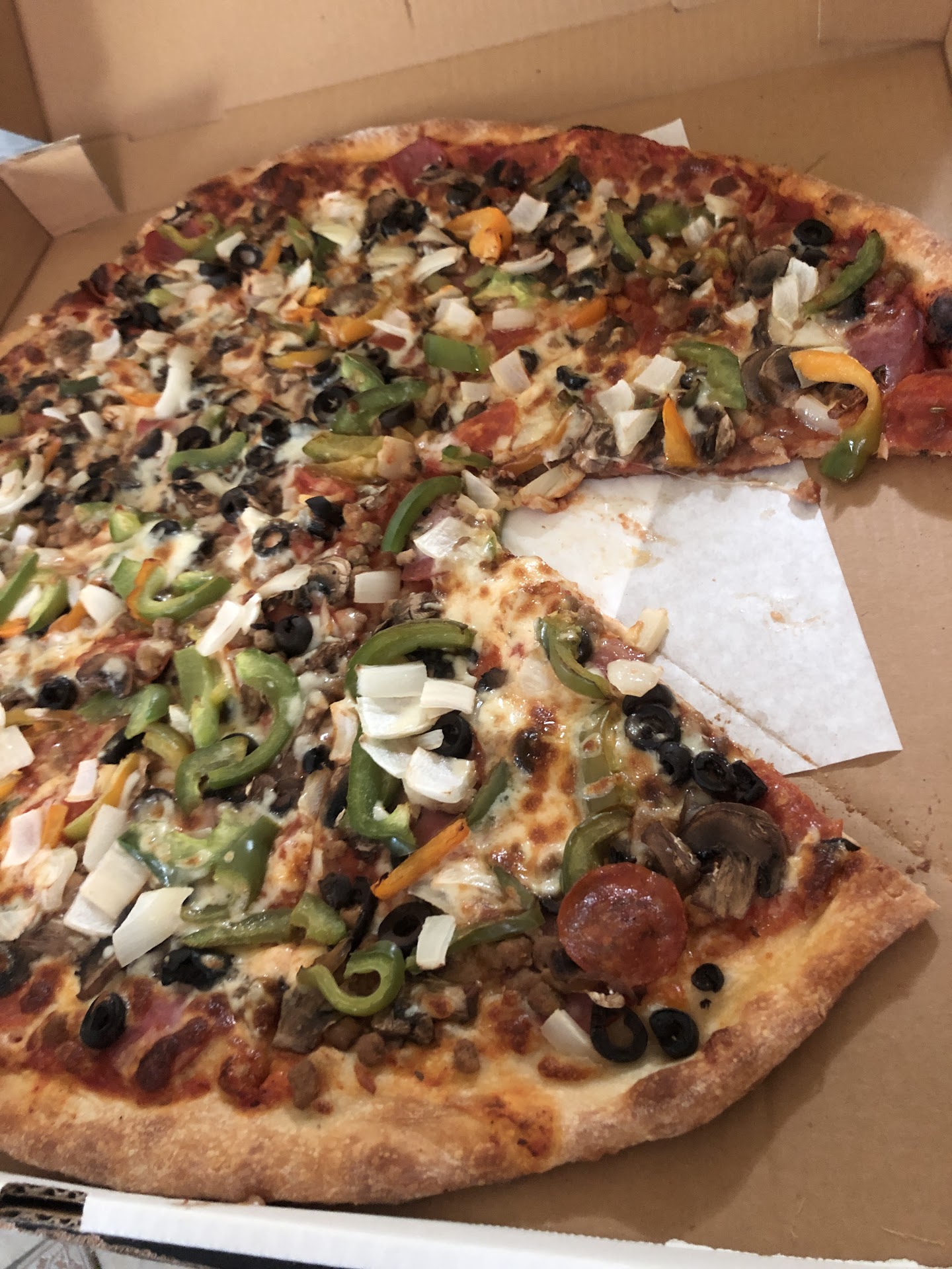 Read moreSoft, thin, flavorful crust, good cheese blend (I think they blend provolone in with the mozzarella), and slightly spicy red sauce.