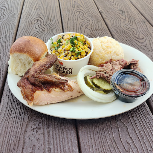 Read moreMy name is Ross Clark. I work in the Hvac industry. With the current corona virus pandemic and the size of our truck we can't go through drive throughs and practically no one will let us come in l. As a result most of the time we are lucky to get a gas station hotdog. Anyone that has had their air conditioner changed knows it's a mess. Takes us forever to load up get food and return to the home we are working on. Now on to my first experience with Cowboy Chicken. I apologize because I did not catch her name but the woman I some to on the phone was amazing. I explained to her I was a first timer and my location had sketchy cell service. She was very knowledgeable about everything and suggested the perfect meal for my partner and myself. Once the order was placed she asked what time I planned on picking it up. I was like ahhh man I thought you had delivery available. She explained that her driver was out running calls and it would be awhile. No problem there I was willing to wait. Roughly 20-30 minutes later she pulled up with our food. I recognized her voice from the phone call. I have to admit with all the chassis going on across the country right now that was so amazing of her. The food could of tasted like gas station chicken at that point she had already won us over with such amazing customer service. The food however was amazing. The chicken was juicy and tasted so good. Fried okra that tasted like grandma made it. The potatoes and mac n cheese had that home made feel too! An that sweet tea tasted like heaven after being in that 140 degree attic. I will without a doubt eat their food again. This was the Irving location. Well done everyone that was involved in our lunch I tip my hat to a job well...