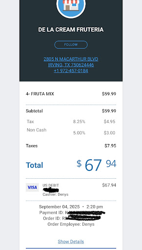 Read moreDe La Cream Frutería is an awesome spot to go and enjoy all sorts of snacks and treats all year round! Denys and her mom are the owners and have an amazing team that help them make things happen! They have so many good options, ice cream, fruit, elotes, chips with cheese and more! They do all types of events and I’ve used them for company events! They come setup serve and have everything you need while you enjoy all the treats you request. They have been such a big hit that we will definitely continue to have them come...