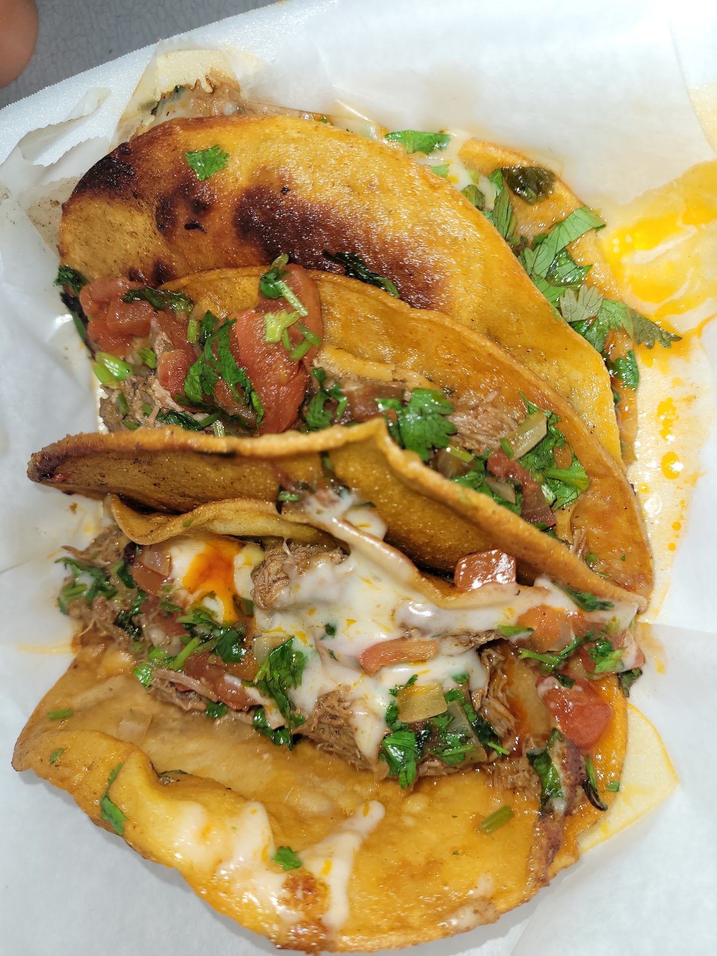 Read moreMy husband and I came into town on business from Detroit. The pictures from other's reviews brought us to this amazing little truck. Everyone we encountered was very sweet and personable and the food was wonderful! Did not disappoint!! Birria tacos are all the rage back home and I had never had them before now. So glad they were authentic! However, I fear I will forever critique them and none will live up to these from El Jefe! Thank you guys! I had 2 birria tacos with cheese, one without. I got them with the cilantro, tomatoes and onions inside. My husband had the Quesabirria and 2 chorizo tacos. All were hot and delicious! We...