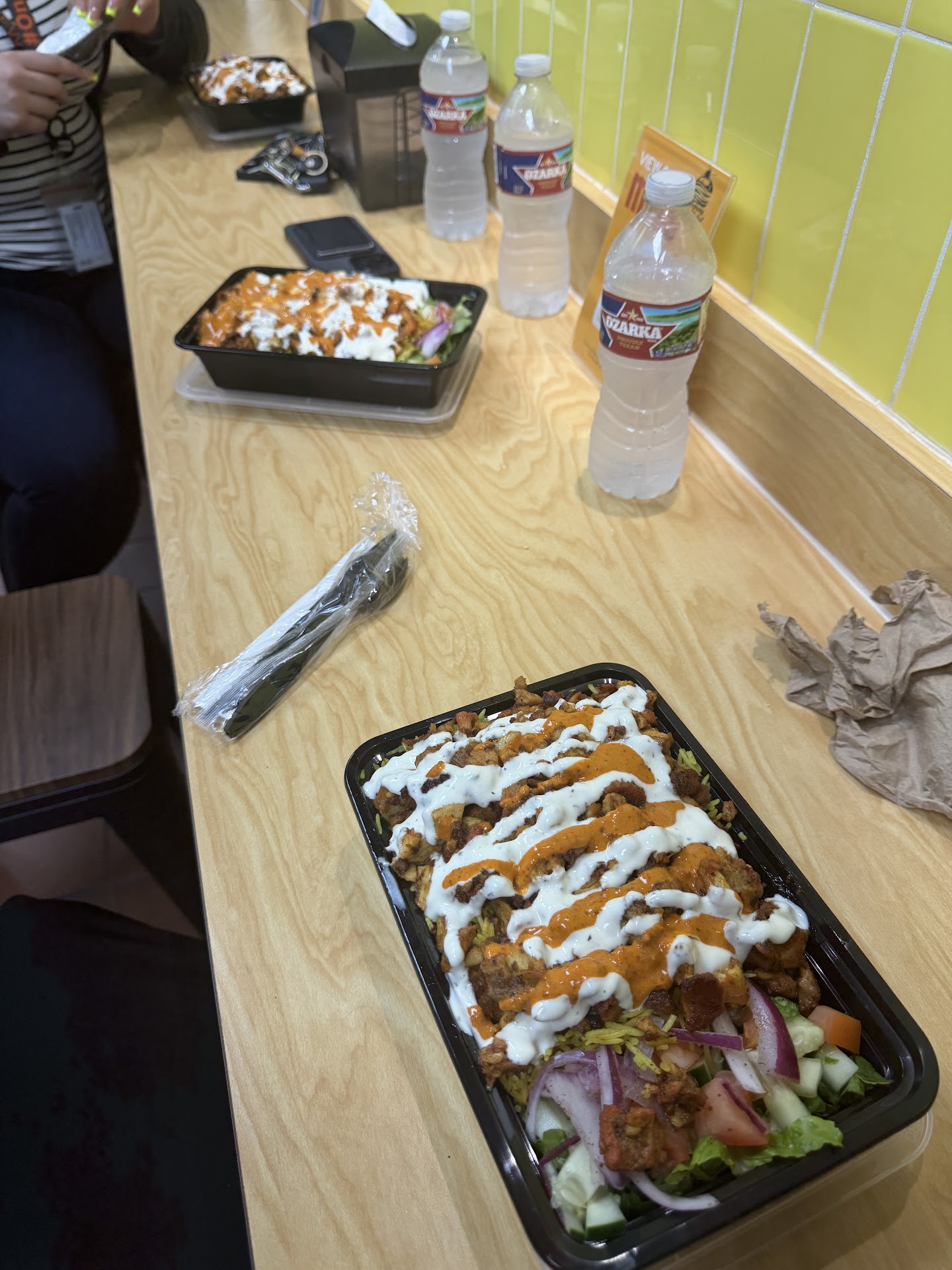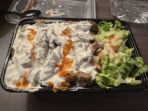 š Chicken over rice: 9/10 The chicken was well seasoned, and the rice was fluffy and flavourful. This combo was paired with fresh salad and doused with white and a unique hot red sauce, adding a lot of flavourā yum! š