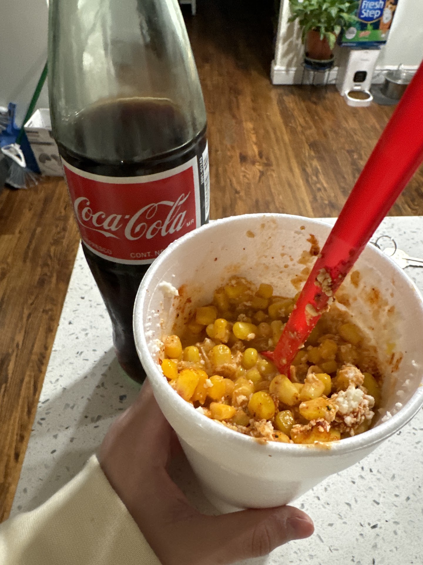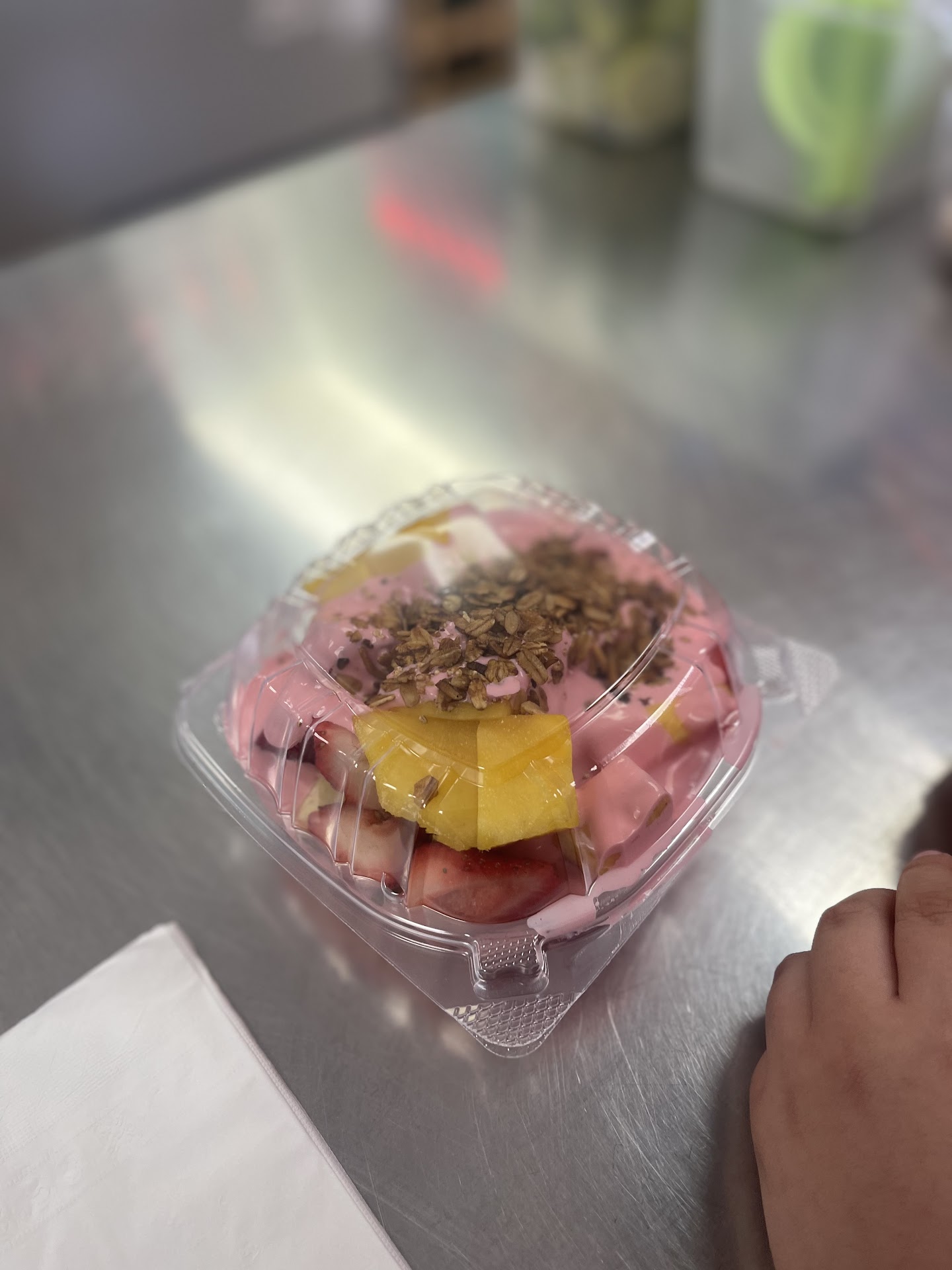 First time, while I was waiting for a juice a gentleman walked in to buy nachos and an older lady employee who was prepping his nachos. After pouring the cheese on the chips she was cleaning off the cheese from the edge of the plate with her finger and licking it off her finger did it all over the plate. Disgusting! Today I totally forgot it was this place from last visit as it was dark. I went for a bionico and they just gave me a fruta con crema. I specifically asked if they had bionicos which they said yes, a bionico is like the fruta con crema but the bionico comes with apples, granola, coconut, pineapple, banana & pecans on top of a variety of other fruits. This place upcharges for mango, pineapple pecans and did not have apples. They said I could only pick one from the granola, coconut or pecans but couldn't choose all 3. The bionicos typically have all 3. I chose pecans and there was an upcharge. Really? They charged me $12 for a small container of fruit. Other fruterias have the bionicos, same size with all included for half the price. Never again will I go to this place. The crema is overly sweet, it is meant for the fresas con crema as the strawberries are more acidic, but it is not well balanced for a bionico. Plenty of other fruterias in Irving this...