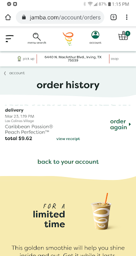 If you’re in the area and craving something healthy and satisfying, go support this Jamba Juice. Great products, exceptional service, and an overall uplifting experience. I’ll definitely be back — and next time, I’ll be sure to get the name of the amazing person who made it...