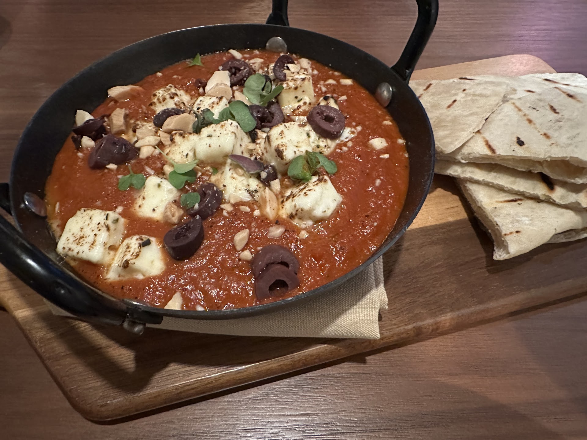 Complimentary appetizer (OpenTable) of feta, olives and marinara with pita was very tasty!