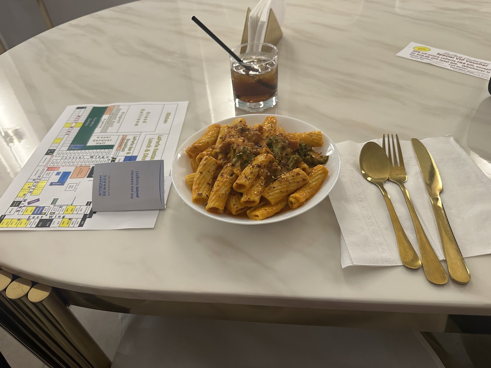 Read morePossibly the worst restaurant experience I’ve ever had. Granted there were a bunch of cancellations at DFW and they were busy, but there was no excuse for what I experienced. I ordered a cheeseburger and a salad at 9:15pm from room service. I was told I would need to come down and pick it up in 30min. ok. no problem. I went down to pick up after 30min and waited for over an hour for my food and it was still not ready. There was one man at the podium, and no servers. All the tables in the restaurant were covered in plates and empty bottles and other crap (ie had not been bussed) and everyone was waiting. It was like there was no system or rhyme or reason. I asked about my order several times and was told it was coming up, but then I was ignored until I asked again which seemed to be how everyone was treated. They refunded me for the salad (but not the chicken add on) and gave me a chicken sandwich bc “It was ready”. We had a long day of travel and were starving so I took it. What a complete disaster. I am dumbfounded that a major national hotel chain could be such a total fail. I would give zero...
