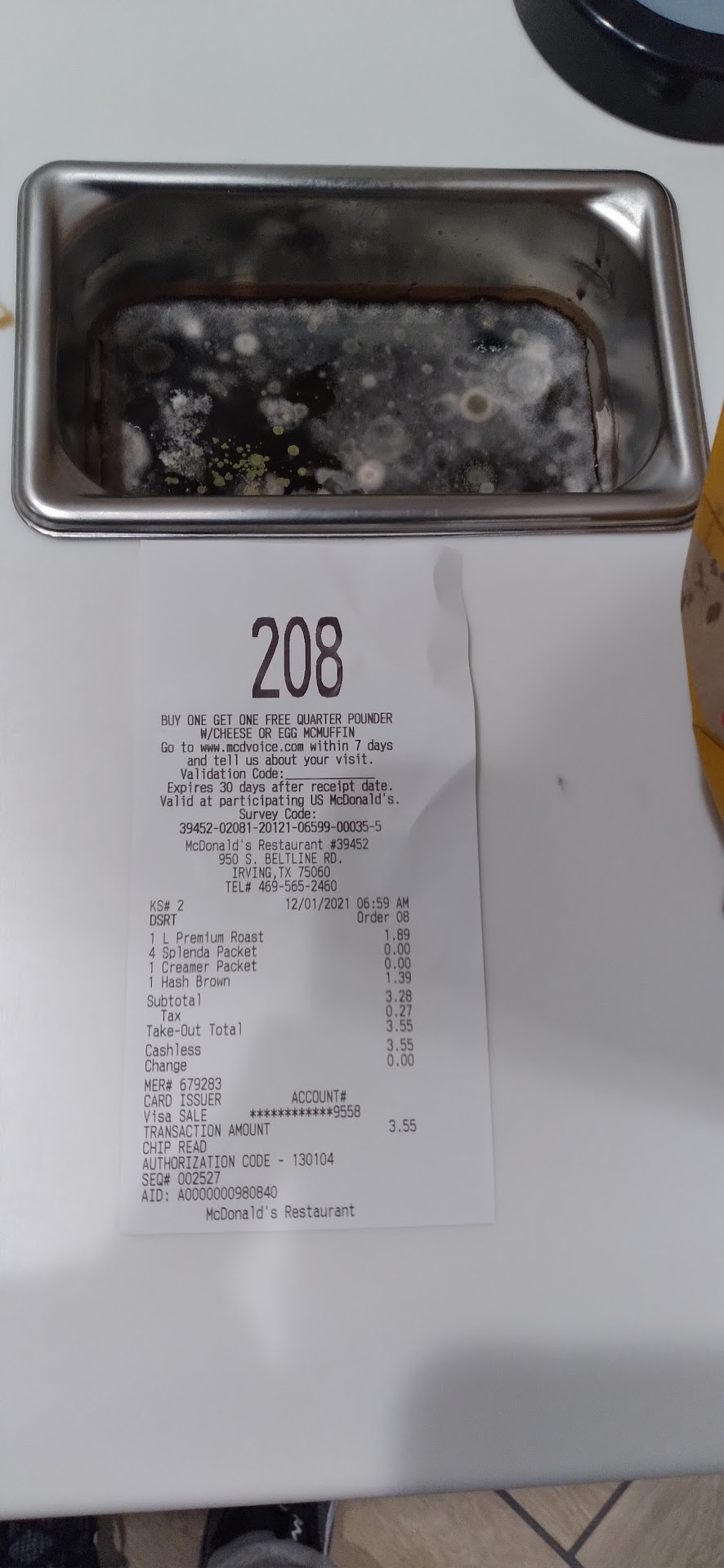 First thing first. kiosk didnāt print receipt. Got my food, and re checked the food with the manager -Iām guessing that was she. We checked the food in the counter pick up and we realized we had missing 1mchicken. she gave it to us..also got the receipt this time. So I headed to our seats to dine in.
