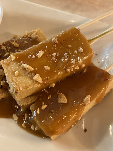 We ordered the Tofu Satay and Crispy Spring Rolls from the Vegan menu. I do not like Tofu much and was expecting to hate the dish. But boy was I wrong! Tofu Satay was AMAZING! The tofu was crispy on the outside and soft on the inside. The peanut sauce drizzled on it liberally tasted just perfect especially with the peanuts adding a little crunch. The sauce on the side with cucumber and onions elevated the taste to a whole new level. The crispy spring rolls were very crispy and amazing with the sweet and sour sauce that was given.