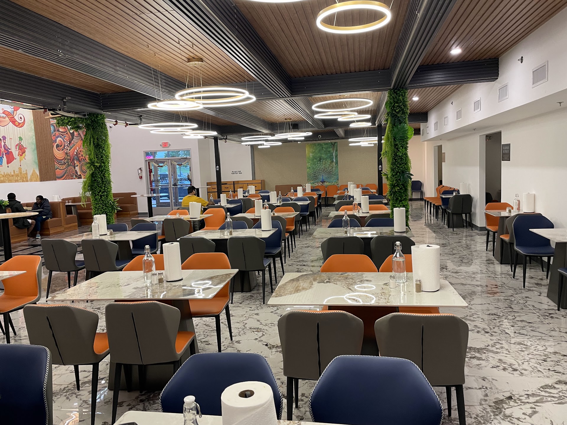 Nice ambiance, hygienic and other amenities of a new restaurant.