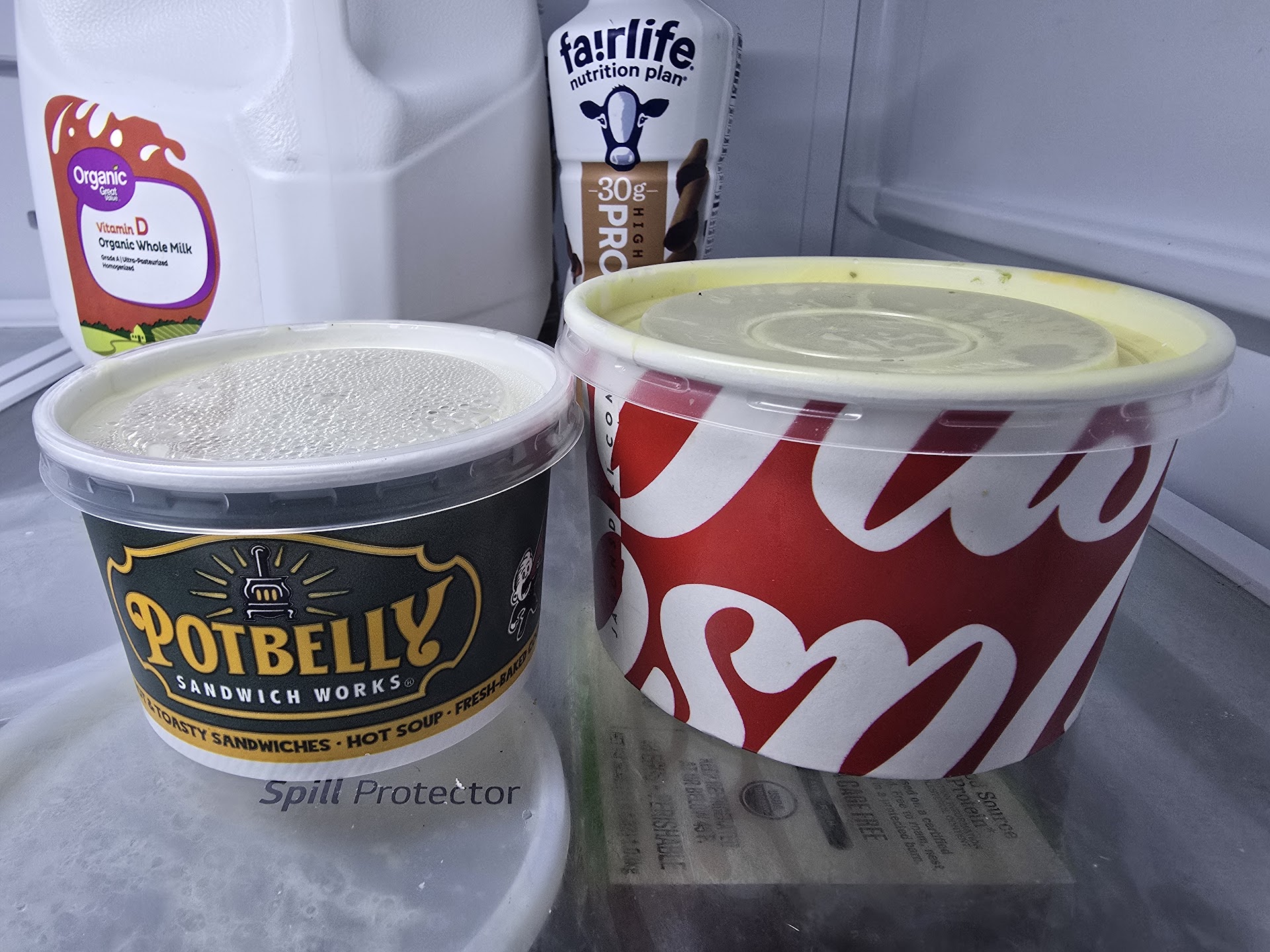 EDIT I've added a picture of the to-go BOWL from PotBelly's sitting next to a BOWL from Jason's Deli. No comparison - Potbelly's is just smaller. You understand, for me, the price is unimportant. I ask for to-go food so I can eat a bowl of soup later, for an additional meal. I want a bowl of soup and would pay more for more soup. I don't want to eat a "cup" of soup that I am hungry afterwards.