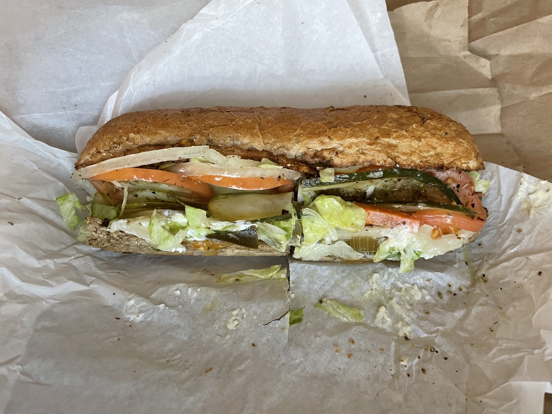 My order is the Mediterranean, on thin-cut multi grain (yes, they cut out the middle of the bun so not as much bread), and the usual toppings with onions and hot peppers added. Yum. My own personal comfort item when I'm homesick or when I'm missing all WA friends. It's a great place to bring new friends and introduce them to the joy of Potbelly. The ice cream sandwich is insane. Try it.