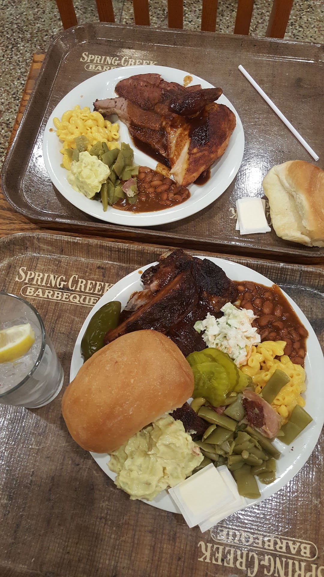 Read moreWhat can I say. I guess I got spoiled by the legendary Terry Black's and Pecan Lodge in Deep Ellum and my local favorite Big Al's on Inwood next to Planet Ford. I got the hankering to try Spring Creek as I always get their buy one get one free rib dinner in the ValPak envelope every month. What a huge mistake!! Upon entering this restaurant, we were promptly greeted and welcomed by staff behind the counter. They advised that both dinners did not need to be ribs, so I opted for the baby back ribs, and my dining partner chose the brisket. We both chose the bbq beans, and for my second side, I chose the potato salad, and my partner chose the cole slaw. The beans tasted like they came straight out of can, and they didn't seem like they were cooked as they were hard, and the sauce they were in was extremely watery. The potato salad was the shining star of the meal. The rolls on our plate were hard and old, and eventually, they came around with hot, fresh ones towards the end of our meal. The cole slaw had no flavor at all. The brisket also was bland, and dipping it on the bbq sauce only elevated the flavor slightly. The ribs were extremely fatty, tough, and greasy. They were old as they were not tender and did not fall off the bone like I expected them to. I will not be visiting this chain...