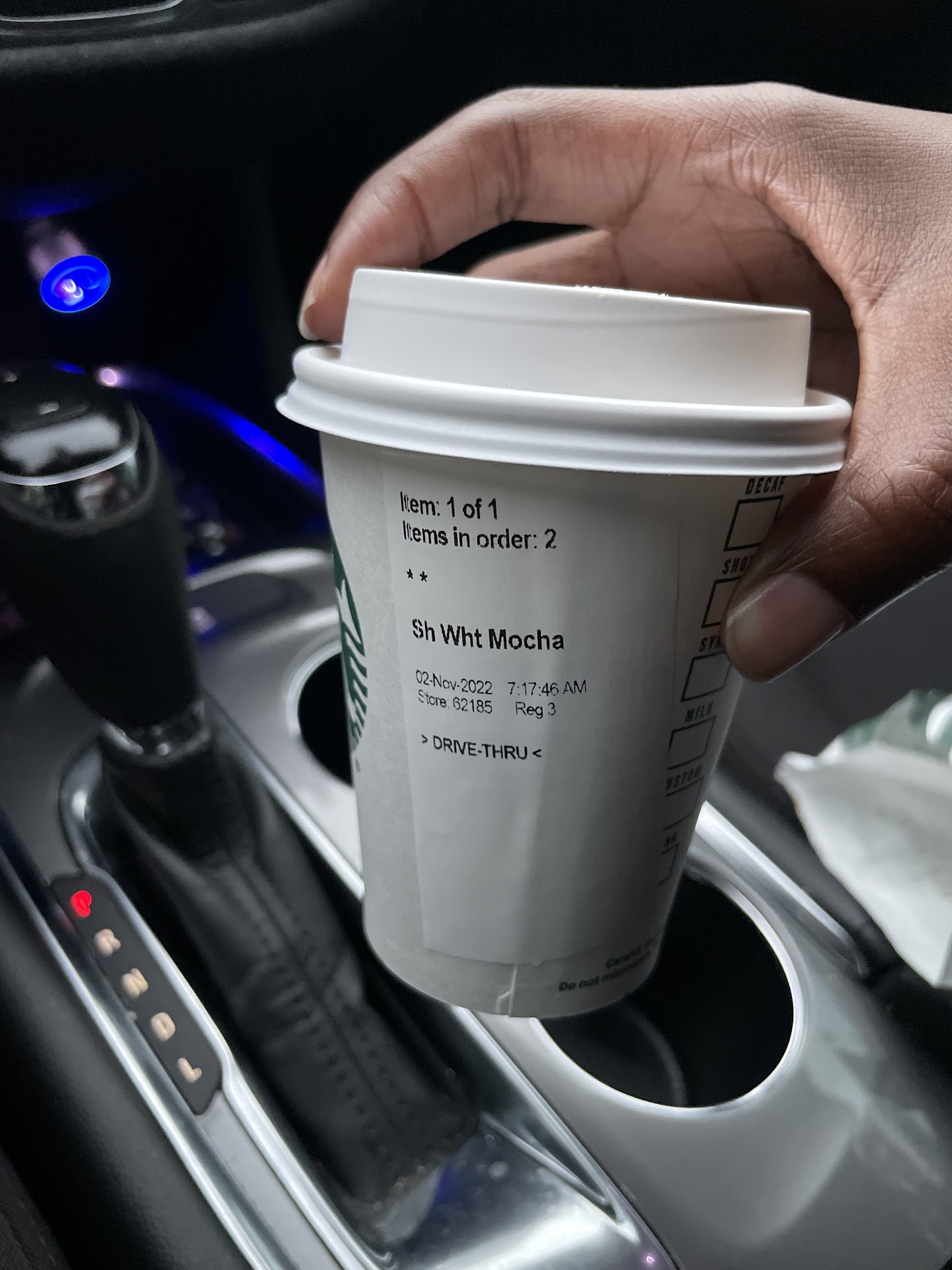 *Tried this store one more time this morning 11/22 and I said White hot chocolate, lady said white hot chocolate mocha, I said NO just white hot chocolate and she even changed it on the screen. Cup read hot white chocolate, so rides off only for it to be a white hot chocolate MOCHA š¤ I will never give them my money again. $4 is just too much to get my order...