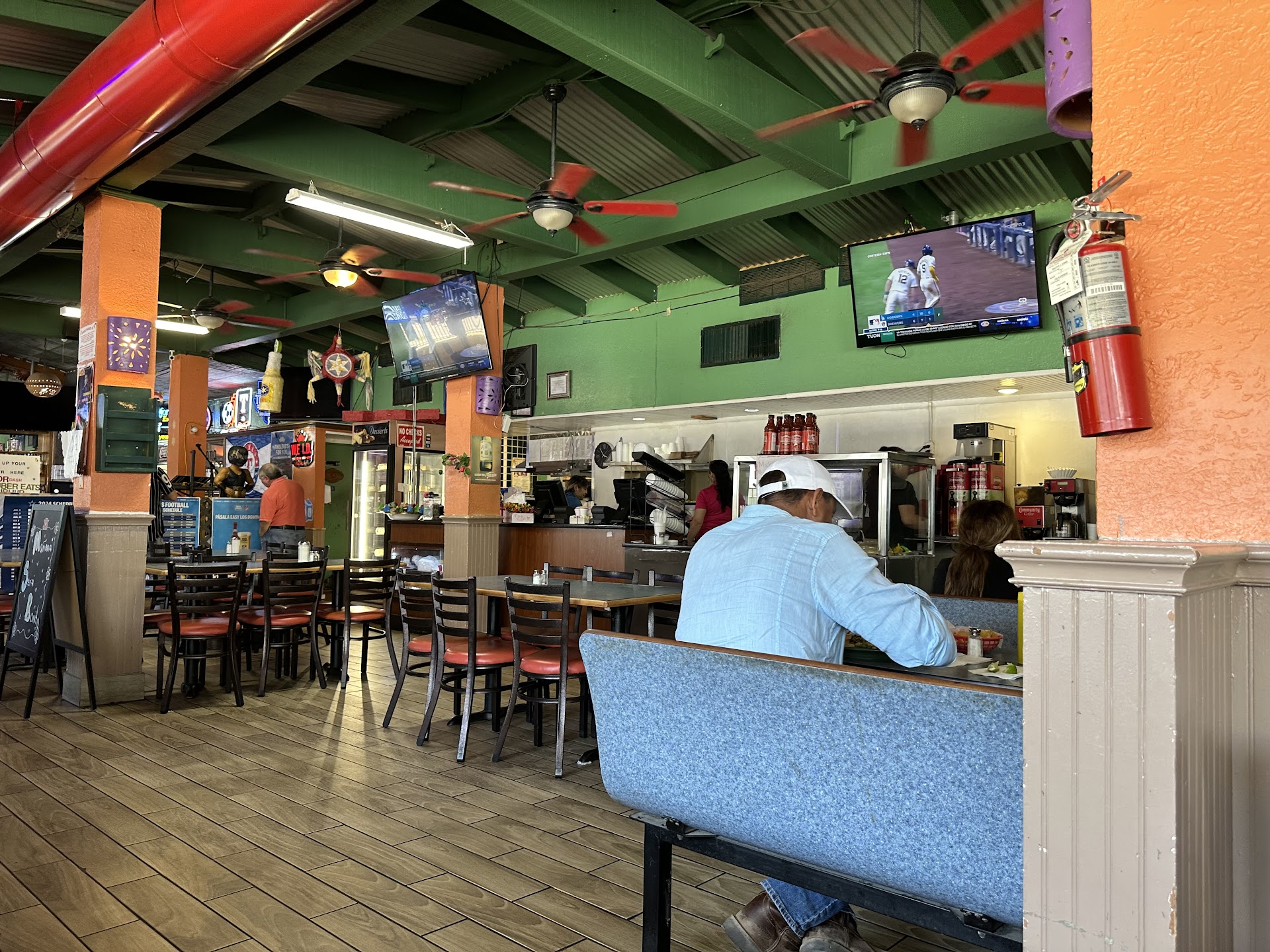 Summary: Waitress are great. Drinks and appetizers are good. Alambres tasted too sweet and bacon tasted past it's best by date. Flour tortillas had too much of a baking powder taste. Rice tastes strange. Beans ok.