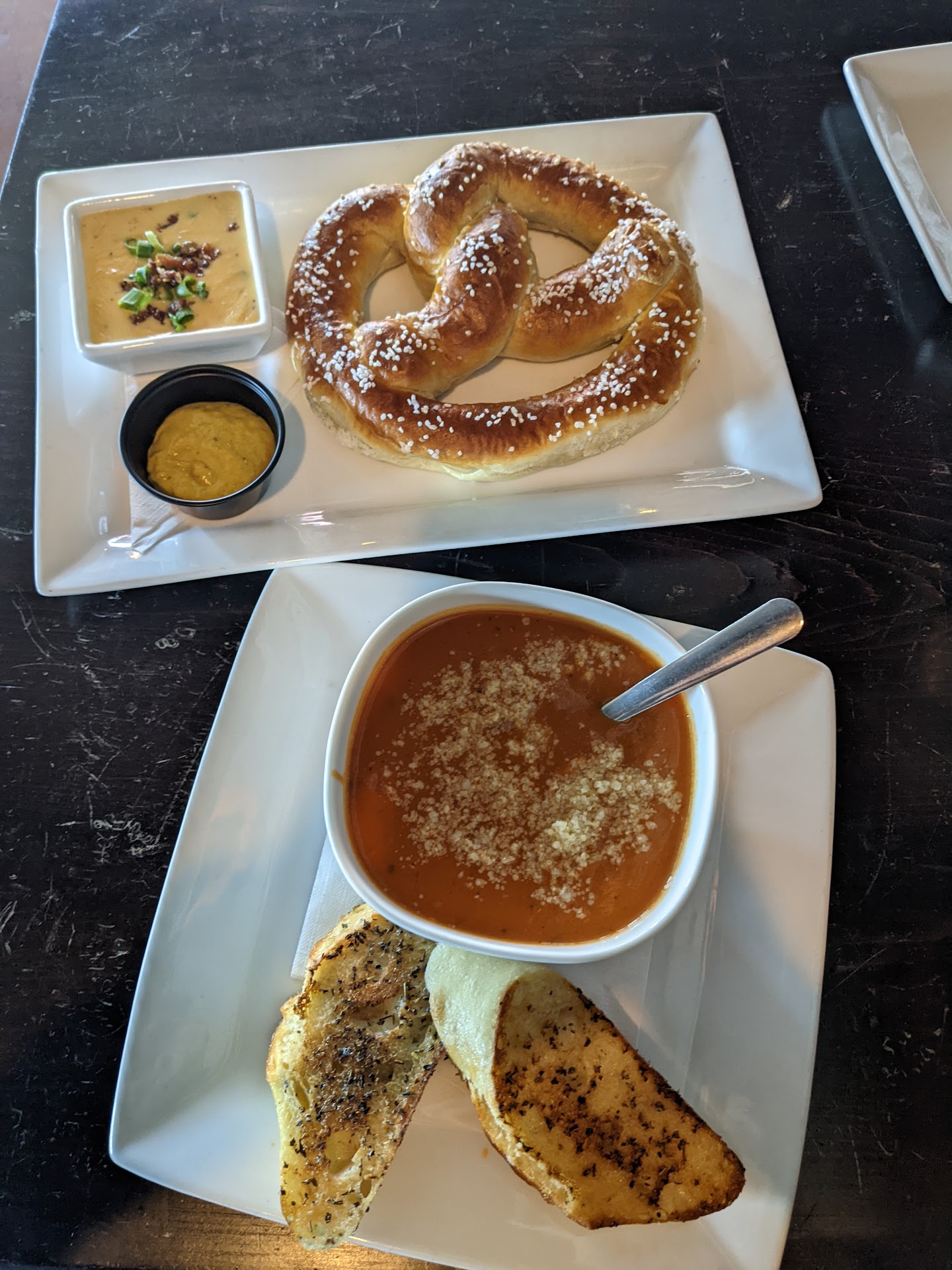 We ordered the pretzel (lukewarm), spinach artichoke dip (tasted like it came from a jar), and the candied bacon (đ¤˘). The pretzel and dip were already sad looking, but the limp chewy bacon shoved into a cup was the nail in the coffin. Even if the food wasnât actually microwaved, it certainly tasted like it.