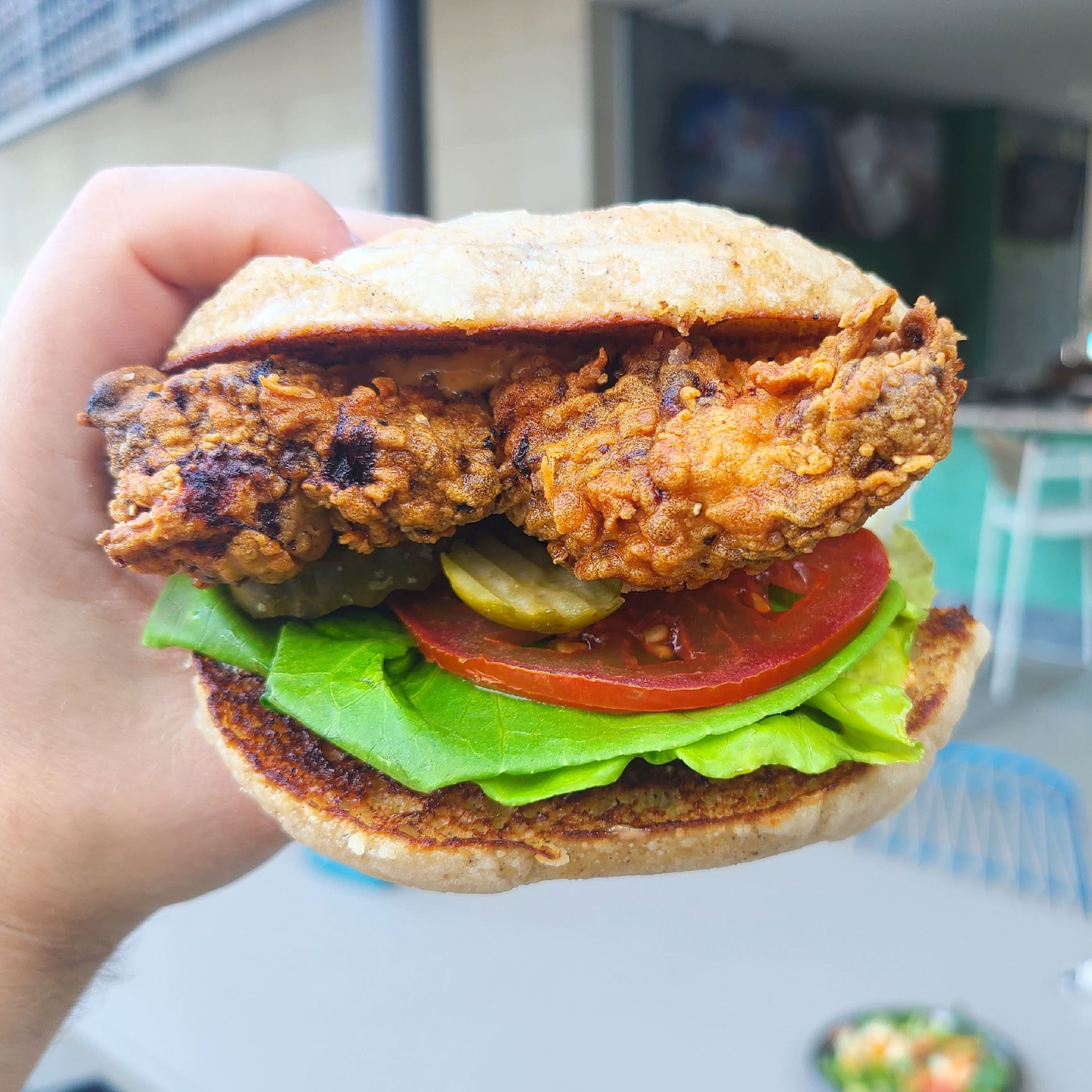 I went with the popcorn chicken with sweet chili glaze and a side of potato tots. The chicken hit the spotâcrispy, flavorful, and finished to the last bite. Didnât quite finish the tots, but they were solid too.