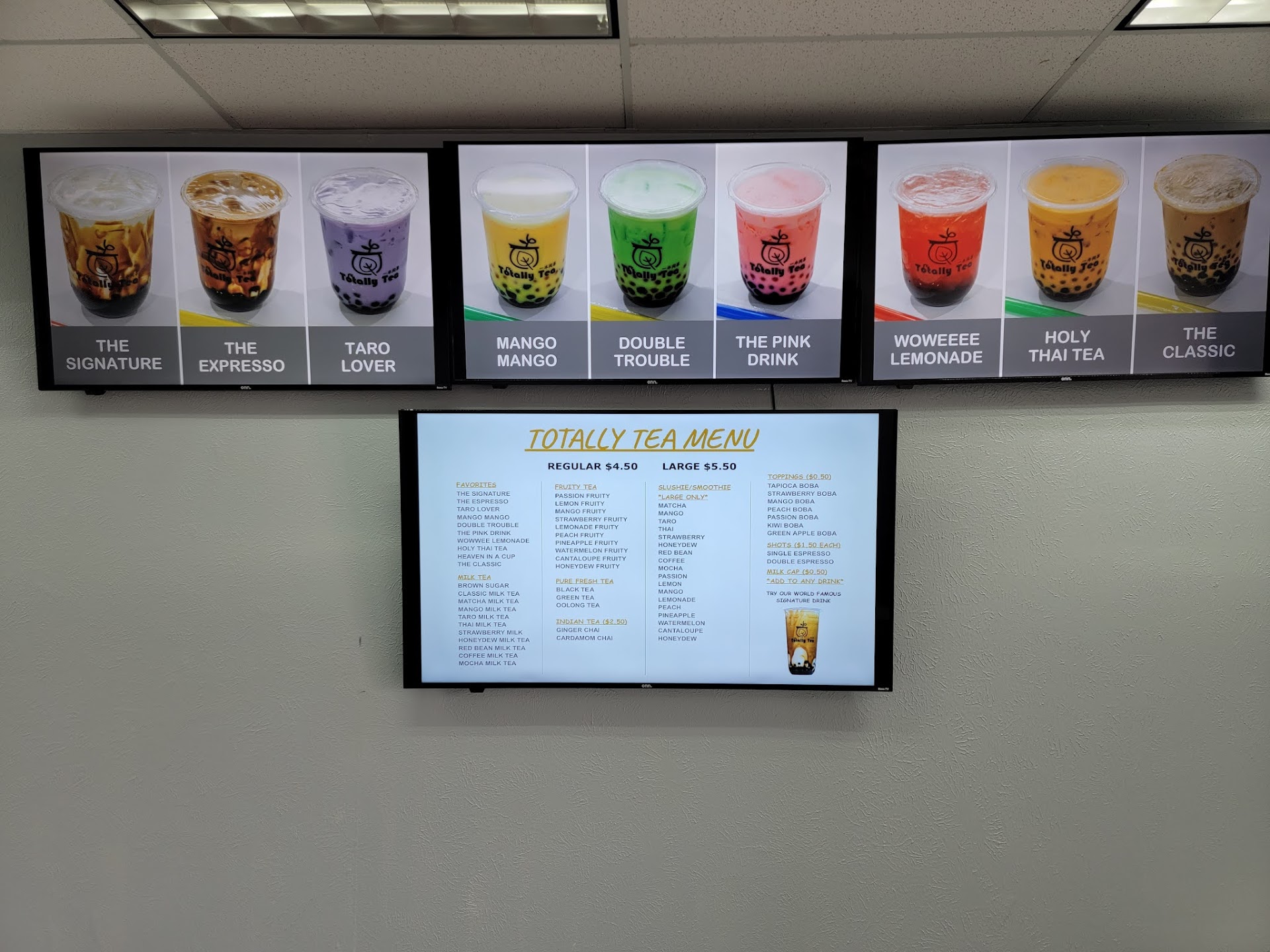 I was already so skeptical when I first walked in and saw tubs of powder on the counter. Gave them the benefit of the doubt and ordered a few drinks. I initially asked about their "world famous" signature drinks to see if I was just milk because the photos looked so white. I was told that, yes, it was just "whole milk". Thus, I ordered the Brown Sugar Milk "Tea" and was told that the signature drink and the Brown Sugar Milk Tea were the same thing. ...How in the world does a milk "tea" not contain any tea?!