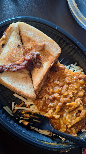 Read moreLet's start with the service... Very lacking, unfriendly, we weren't greeted by any of the staff. Our waitress was brusque, to say the least. We waited way too long for our drink order to be taken, we were seated about 10 minutes before our waitress even came by our table. Yeah, they were a little busy, but there were tables open, so they weren't slammed. After we got there, (they did get VERY busy). When she brought my husband's order she passed his food under my nose, HE WAS SEATED ACROSS FROM ME!! When my order came, yes I had to wait for my order, she slid it across the table to me, and walked away! I had asked for lemon in my tea, they came after my food. My hash browns were burnt and tasted terrible, which made the rest of my bowl taste terrible. Then we had to wait on our ticket, why? because our waitress never checked on us and was busy cooking. Speaking of cooking.....I watched as one of the cooks, with an ungloved hand, dug a can of spray oil out from under the refrigerator cases, SET IT ON THE COOK AREA, THEN PROCEEDED TO MAKE WAFFLES!! HE NEVER WASHED HIS HANDS OR PUT ON A GLOVE!!! He didn't wipe the can either.... He just continued with "business as usual!". He reached into the fridge, pulled out the waffle batter, sprayed the waffle iron with the dirty can, and dipped the batter on to the iron. Then he took off his, ONE, glove that he was wearing. At that point, THANK GOD, our check came and we left. Avoid this place, at all costs!! My husband refused to let me say anything, so I told him I would give them a review, instead. So here...