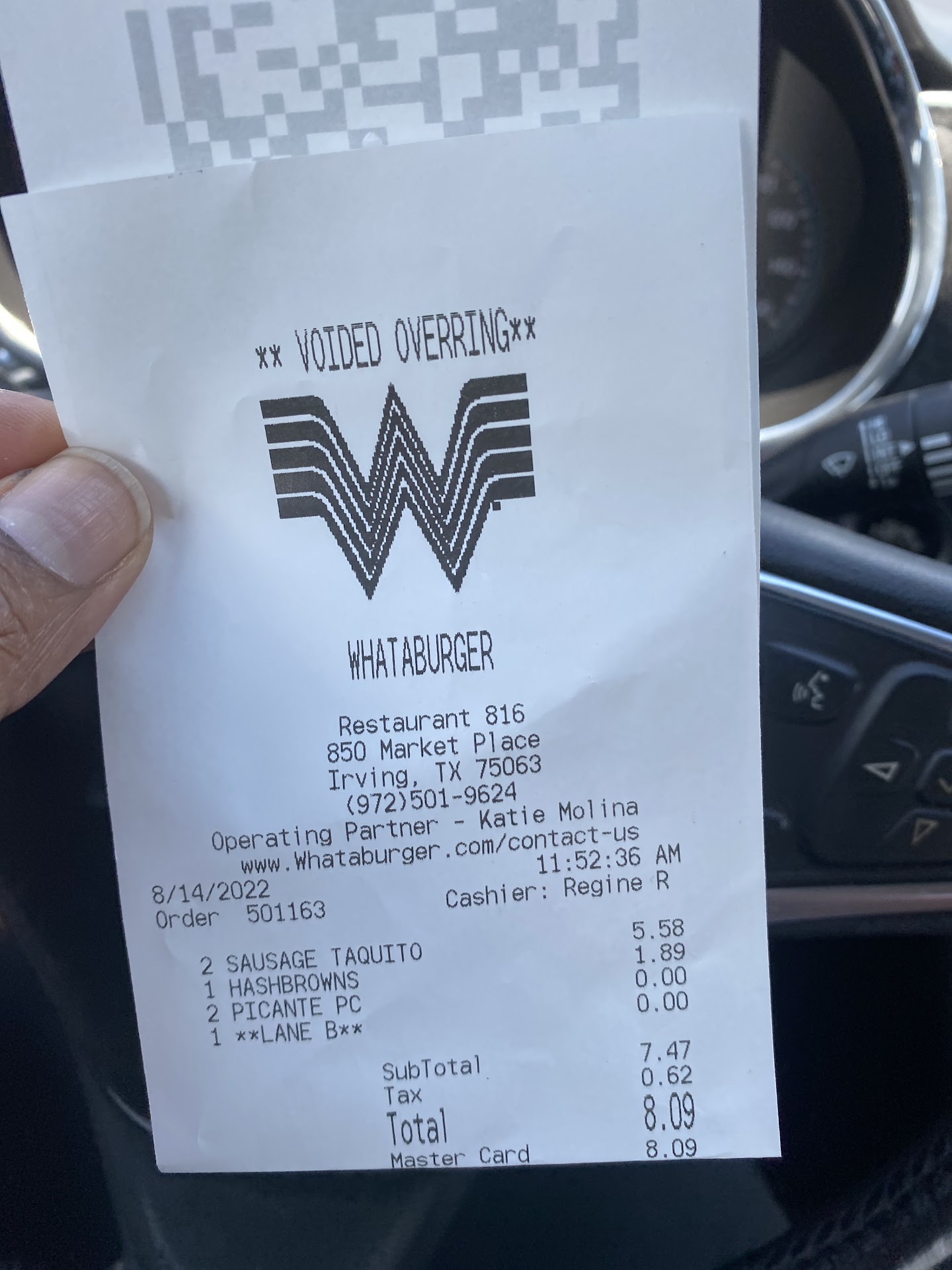 Read moreI usually don't leave reviews but this place makes me sad. I ordered a patty melt through the drive through (a staple of this franchise) and I have to explain 4 times that I want an additional small fry (a sacrifice to my fiance). I pull up to the window to pay and I am asked which order is mine; you know a fairly normal question if there were many folks in line, but there was no one else in line so I am the only there. Fairly strange but not as strange as the guy typing in a manager code to access the thing and then using his own whataburger app to get himself points for my checkout. Then I don't get a recipient and asked to move forward so that they can bring it to me when it's ready cause the fries are still cooking (fairly normal, but it gets weirder). So I am waiting and he brings me my food and I say "ayo, where's my sweet tea?" And the cashier goes "ope, I forgot it. 1 sec". AGain fairly reasonable, except for the fact that I waited 5 minutes for him to bring me my sweet tea and also the fries that supposed were fried fresh were bone cold upon delivery. He had also given me a single ketchup for 2 big things of fries because that makes sense. Finally I get home and my patty melt that should have grilled onions on it has raw onions on it and is also mostly cold (it's a 5 minute drive from my house so it didn't get cold in the car clearly), so what on God's green earth were they doing back there for 25 minutes while I was waiting for my food? Like I don't usually rant about this stuff but this is the 4th time I've had bad service at this particular whataburger so like I feel obligated to say something. Needless to say, I am disgruntled with this location and it's services and food that it provides. I would recommend going to the steak and shake just around the corner from this place as they actually provide burgers and fries that are warm upon arrival. I apologize for my outburst, I will now sulking and consuming the mid food that the establishment has provided. Hope anyone reading this a better...