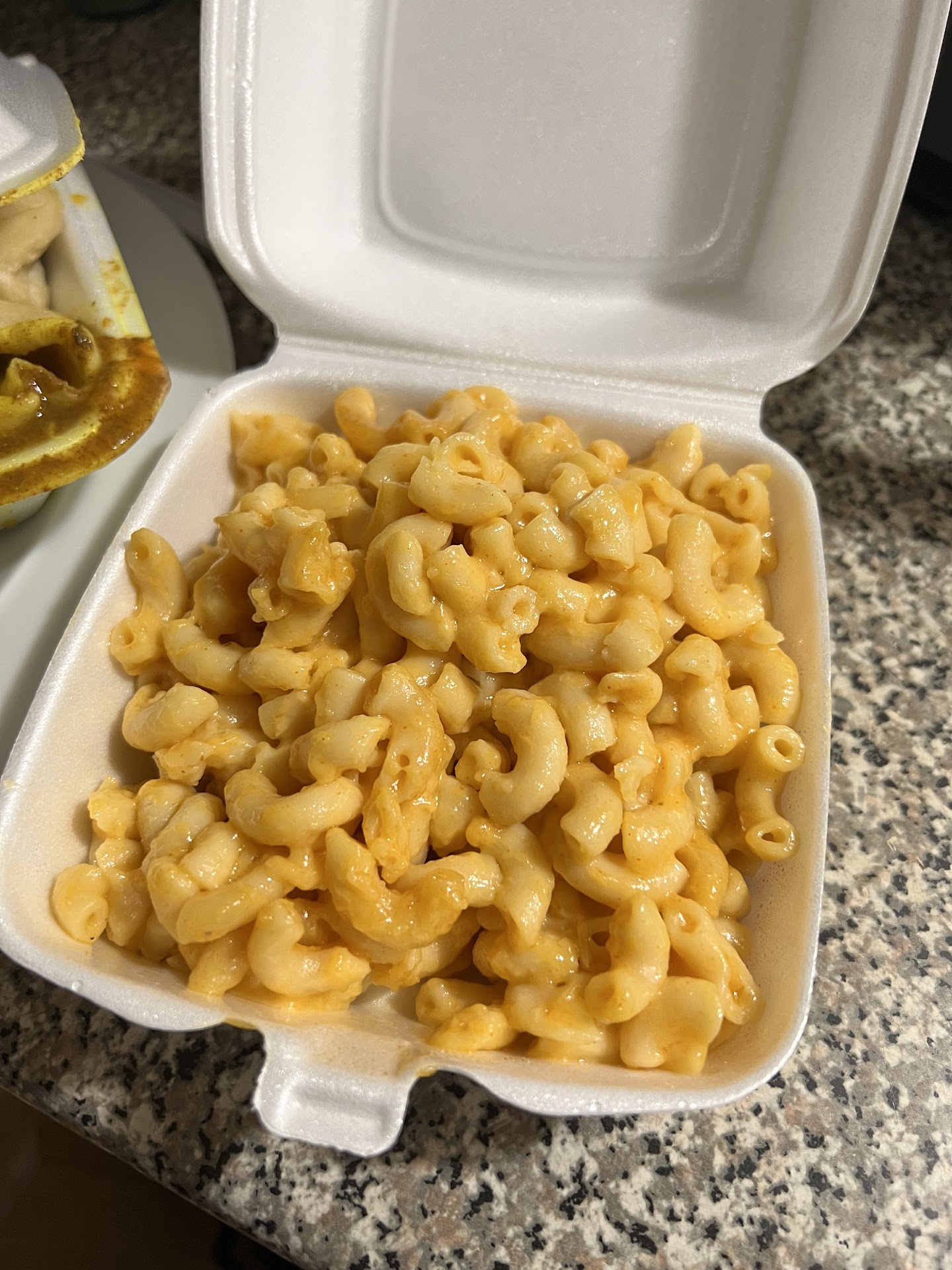 -Portion: they were huge with lots of meat and little bones -Quality: I haven’t had goat cleaned and tender like this one outside of home cooking. I was impressed by the quality and cleanses -Taste: I would have given this place a 5 but unfortunately it was too salty. The goat was tender,cleaned well, cooked well but it didn’t have flavor. Rather it has a lot of salt. This took away from the dish :(. -Mac and cheese: It isn’t southern style smoke guda kind of Mac and cheese. But it taste better than regular easy mac. Definitely edible. It also had a nice little kick.