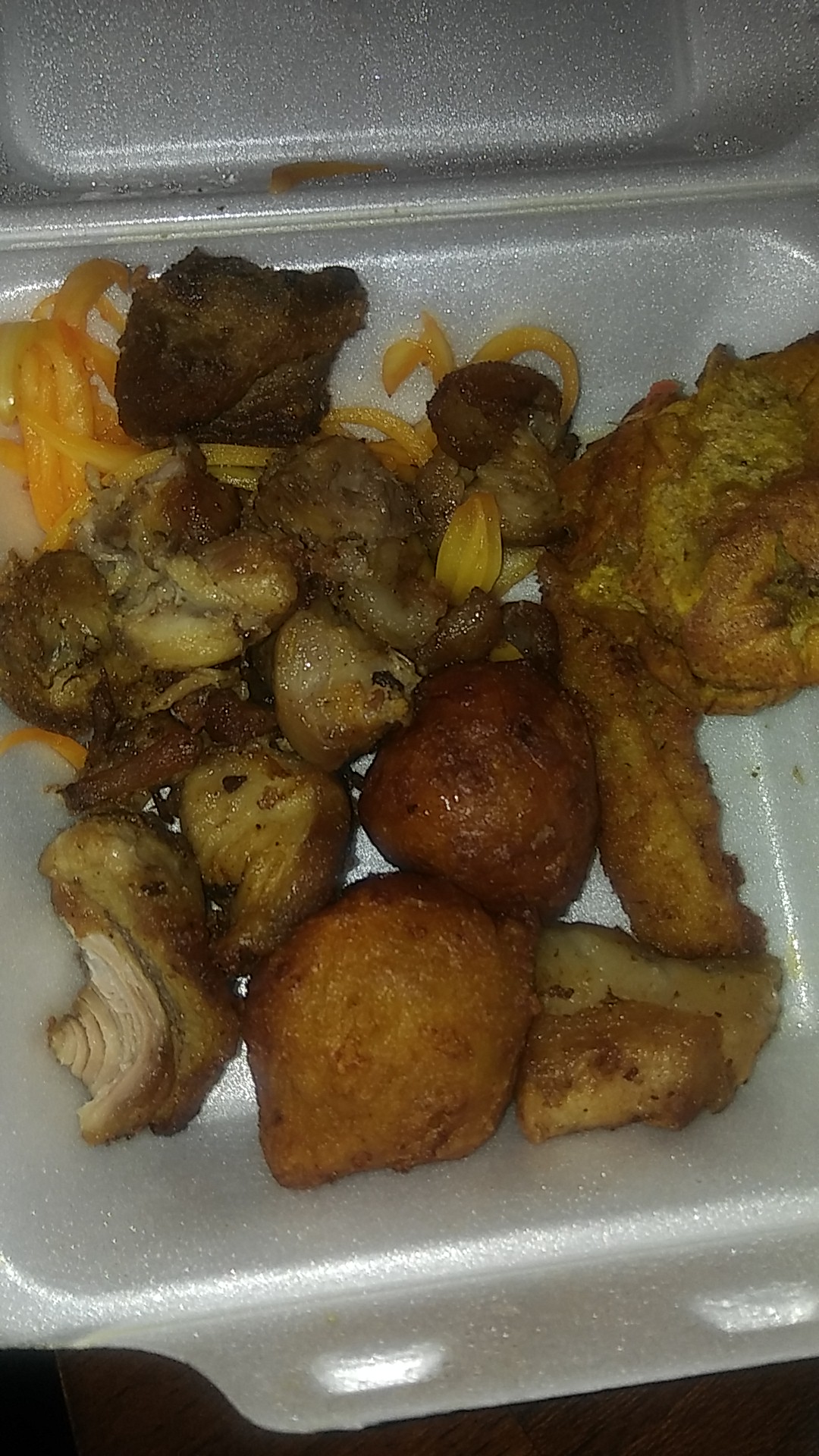 Read moreThis was my first time buying food here. My boyfriend said it was a good place to get fried food. I called to order and asked what type of sides came with the fried goat. The lady answered me and said you get 4 different sides, which was plantains, acras, marinades, and sweet potato. When I got there there my food wasn't ready and had to wait another 30 minutes for it even though they told me it would be ready in 15 mins and I gave them 30 minutes. When I tried to look at my food the lady said you don't have to look at it because everything is there and placed it in the bag. When I got home I was so excited to try my food and opened it and found that the only thing that was in there was Plantains and Marinades. I was so pissed. All she had to tell me was that they didn't have the other sides and I would have made the decision to order it or not. I will never come back here again. I rather go across...