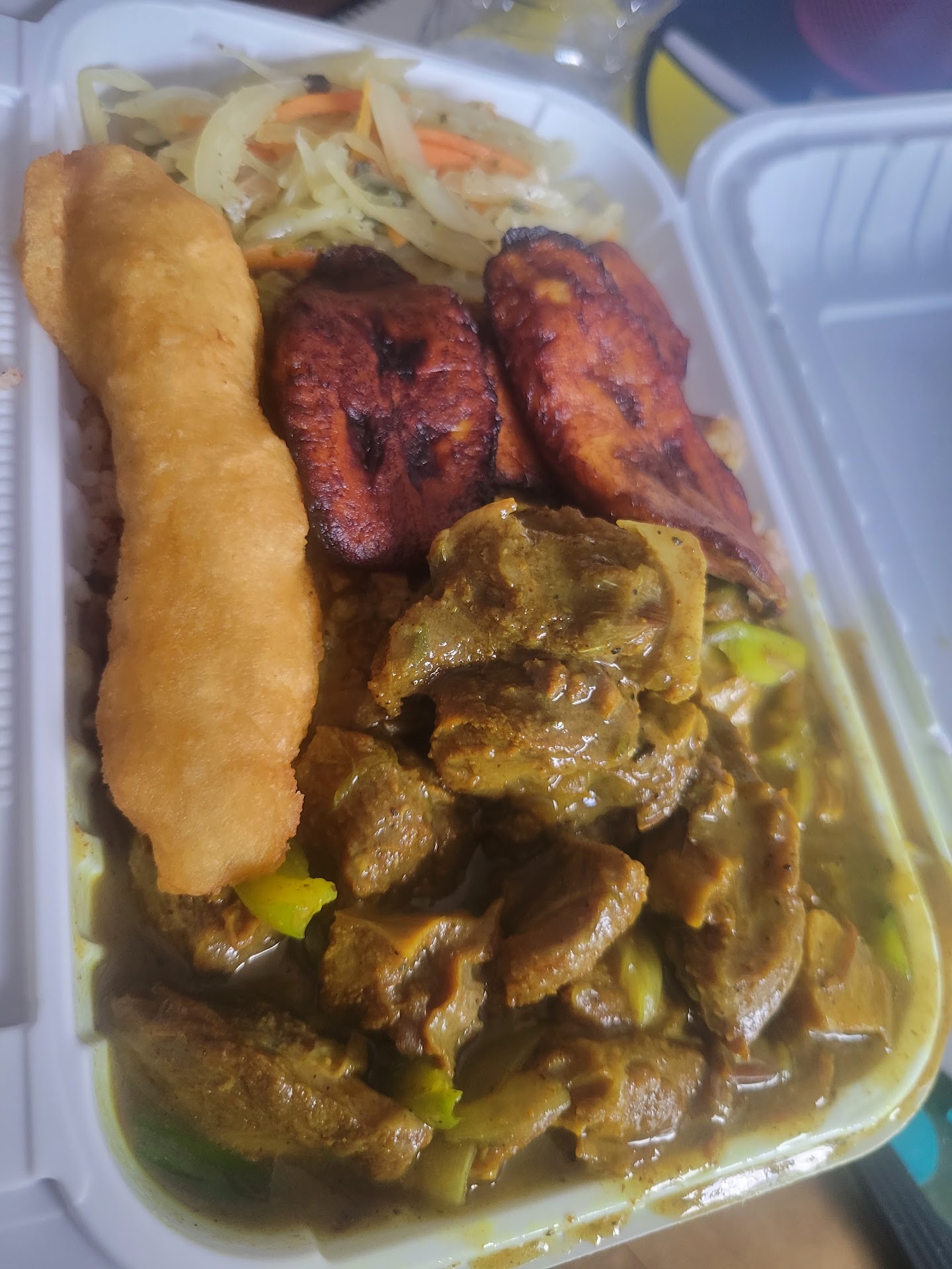 Read moreMy first visit I ordered the curry goat, cabbage, and Rice and peas. It was really flavorful and cooked well.. The meat could have been trimmed of the fat more but it was a decent amount for the medium size. I wasn't a fan of the cabbage though. The second time I went, I ordered the oxtail. Again, a decent amount but they weren't as tender as I would have liked. I got the cabbage again, as they are limited on their side dishes. The plantains are good. I went again this weekend. I was to lazy to cook and wanted something quick. I wanted to try the jerk chicken but was a little sceptical because of the oxtail situation so I ordered the curry goat again without the cabbage. It was good but again, they really should trim the fat. Oh yeah, on my first visit, they gave me a taste of their Rasta Pasta, which I never had so I had nothing to compare it to, it didn't have any meat or anything but it was very good. They have the best prices compared to other restaurants I've been to...