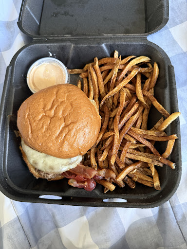Read moreWelcoming environment and server. Quick service and eager to please. Crayons and coloring books for the kiddos! Also, two words: UNLIMITED. FRIES. That's unfortunately where the great experience became just an "ok" one. The burger, at this particular burger joint was topped nicely, although most of the options were very similar with a few minor differences like slaw, or bacon jam. The pattys, of which there were 2, were ample, but pretty greasy, and not seasoned very much, if at all; a little salt and pepper could have gone a long way. While they tell you upon asking that all burgers are prepared well-done, mine was inconsistently cooked, with large sections of pink (medium) meat. And while that's normally how I prefer it, the inconsistent nature of this burger actually detracted from any flavor that could have been left, and the non-red parts just tasted dry and overdone. For cost, while I've paid more for burgers before, with this being a small-town joint, with limited options, it was more than I expected to pay. You'd get more bang for your buck with a Five Guys or Red Robin burger in terms of flavor, and still save a few bucks. Overall, this wasn't a great showing, and as it was my second time there, and having the same basic experience both times (2 years apart), I wouldn't expect much...