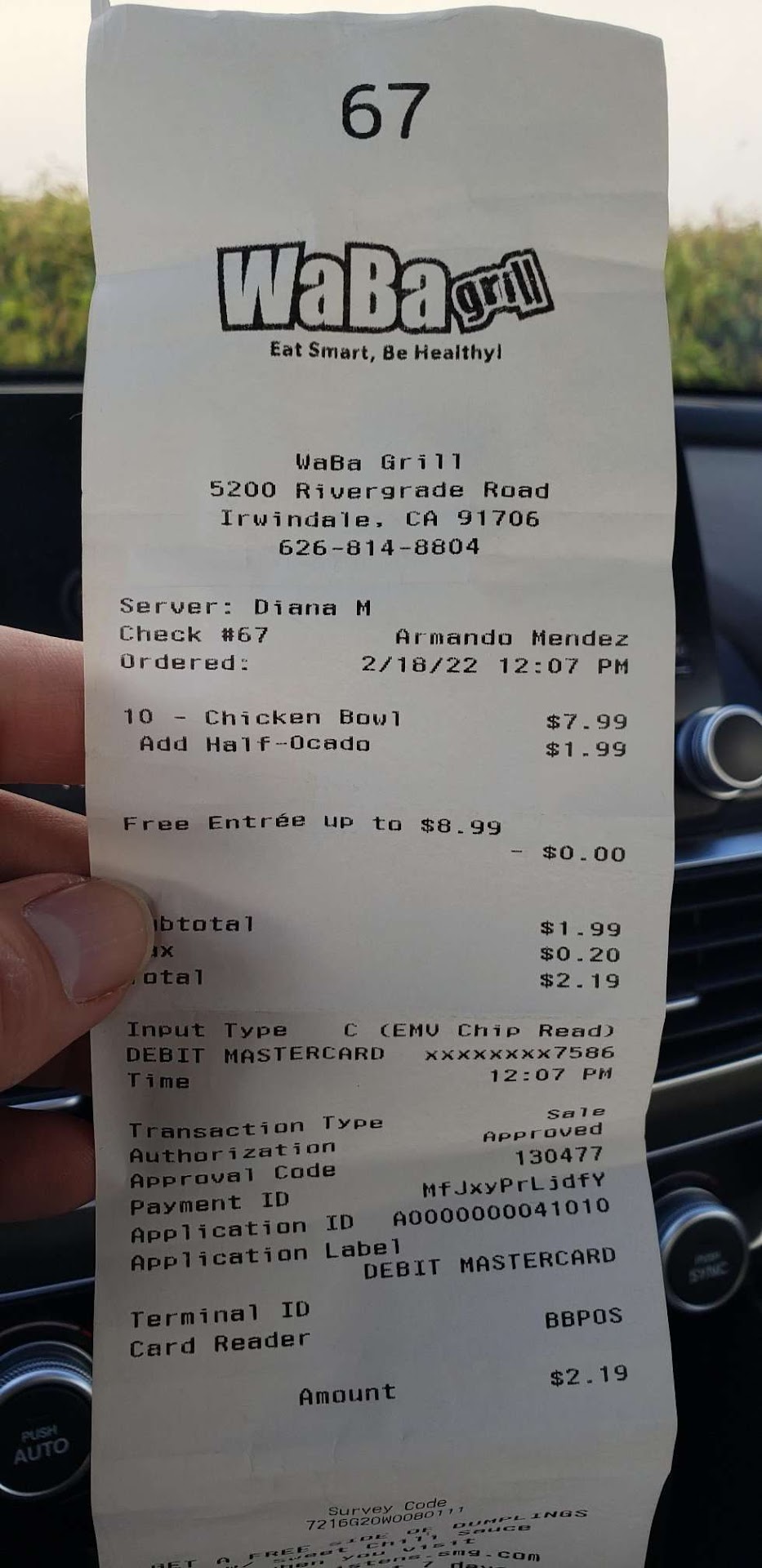 Read moreCashier Ivan G on 2/25/25 1300 hrs gave me the worse service since I've gone to this location for a few years... this "guy " was literally rushing me as I was ordering trying to figure out what options I wanted on the particular meal I ordered. No customer service skills whatsoever bottom line is I'm not coming here anymore to pay the wages for a person like this who has an attitude problem and doesn't say a damn word and I don't know what the hell's going on with my order he just throws the bag at me with no condiments. What's more disappointing is I served this country for 8 years and to deal with this type of people really disappoint me especially everything I've dealt with being a first responder. Owner of Waba Grill Irwindale if you read this I hope you correct this person's behavior and explain to him he needs to learn how to be a better person and not have an attitude for whatever stuff he's going through...